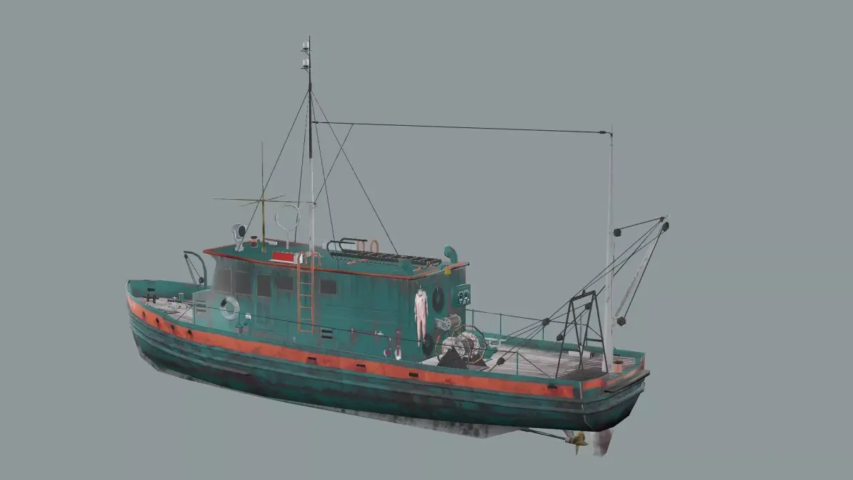 - Low-poly, game-ready fishing boat model, ideal for real-time and interactive projects.