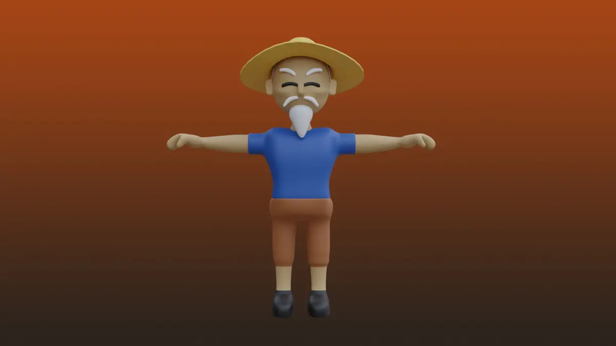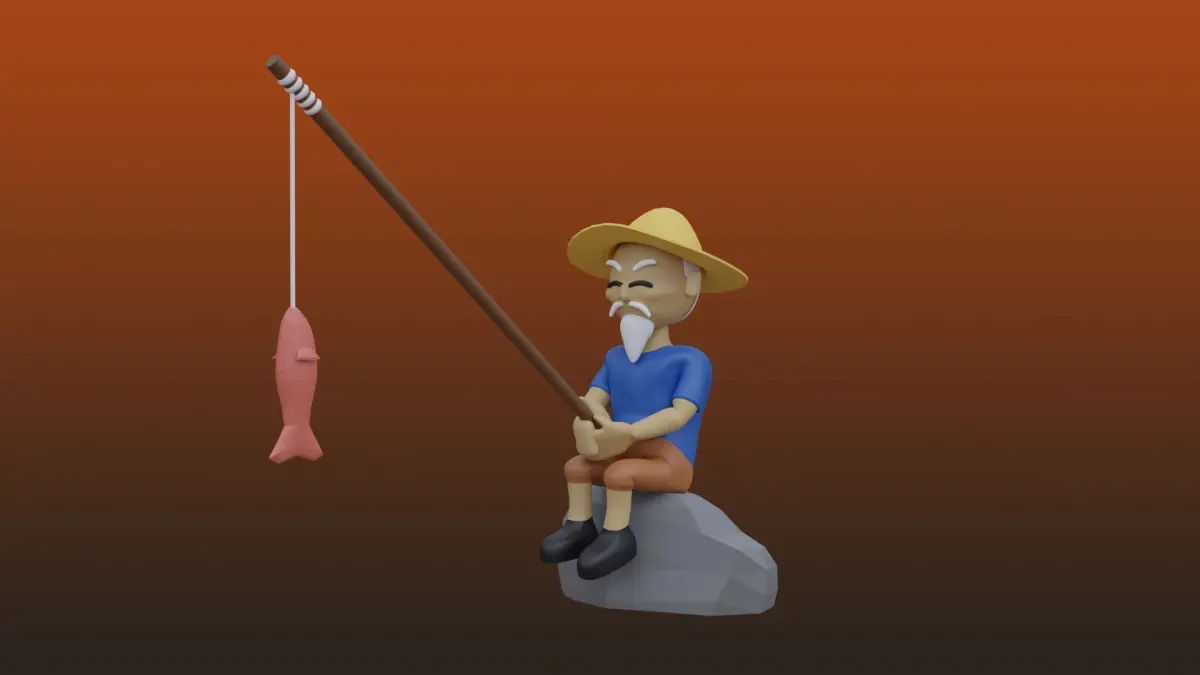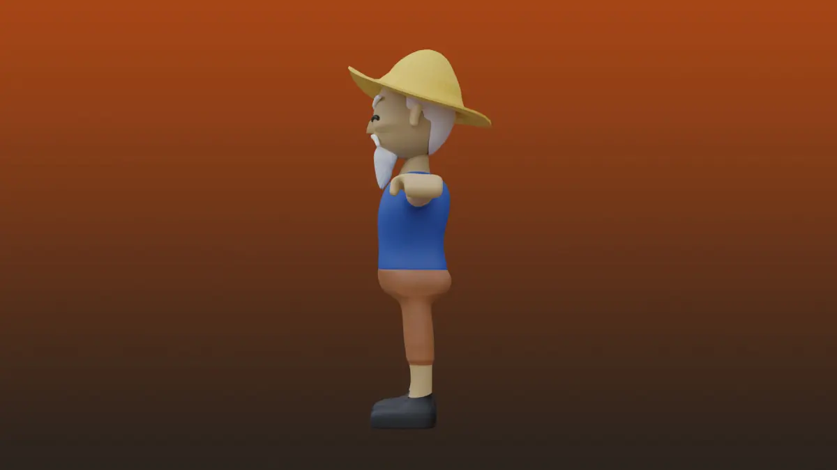 Old Fishing man Low-poly 3D model