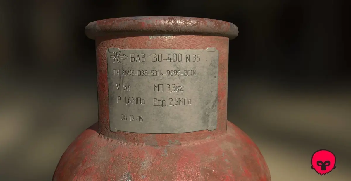 Low poly Old gas cylinder, volume 5 liters. Three set textures: PBR(Normal, Base, Metalic(G)Rougness(B)Oclusion(R), Default substanse painter set textures (Base, Height, Metalic, AO, Normal_OpenGL, Rougness) and for unity universal render pipline (Albedo, AO, Height, MetallicSmoothness, Normal DirectX, Normal OpenGL). GAS_BALOON_non_tri.fbx not triangulated.