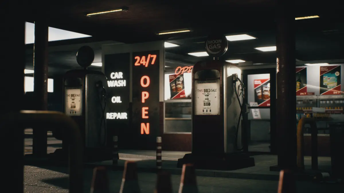 Detailed old gas station with two different demo maps(Day&Night).Interiors are available.Foods,drinks and posters uniquely designed and copyright free.