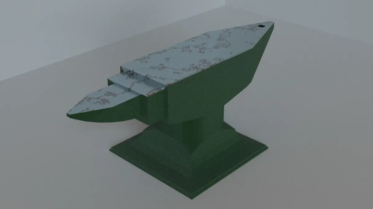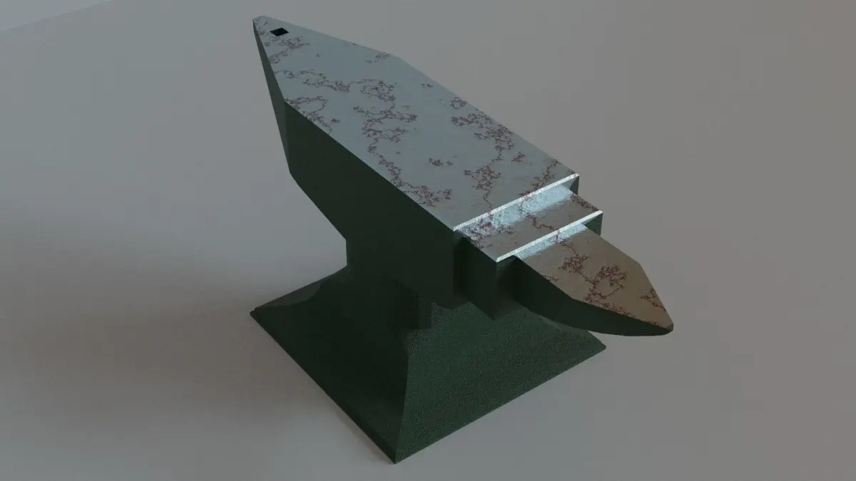 an anvil with procedural textures for the face that can be adjusted in many ways, the amount of rust can be increased or decreased and the number of scraches and their depth can be changed, perfect for the custom object in a scene or a videogame. The procedural textures are great quality and can stand up to close scrutiny.