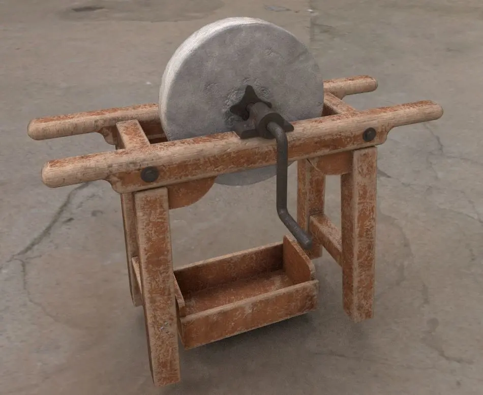 Model of old grindstone . Model is very realistic. It has 5 PBR material.Maps are diffuse-specular-glossiness-height and normal. Also, PBR Metallic-Roughness ( Basecolor- Metallic- Normal-Roughness- Height ) workflow has been added. Model's textures has two sizes; 4096x4096-2048x2048. All maps are PNG formats .