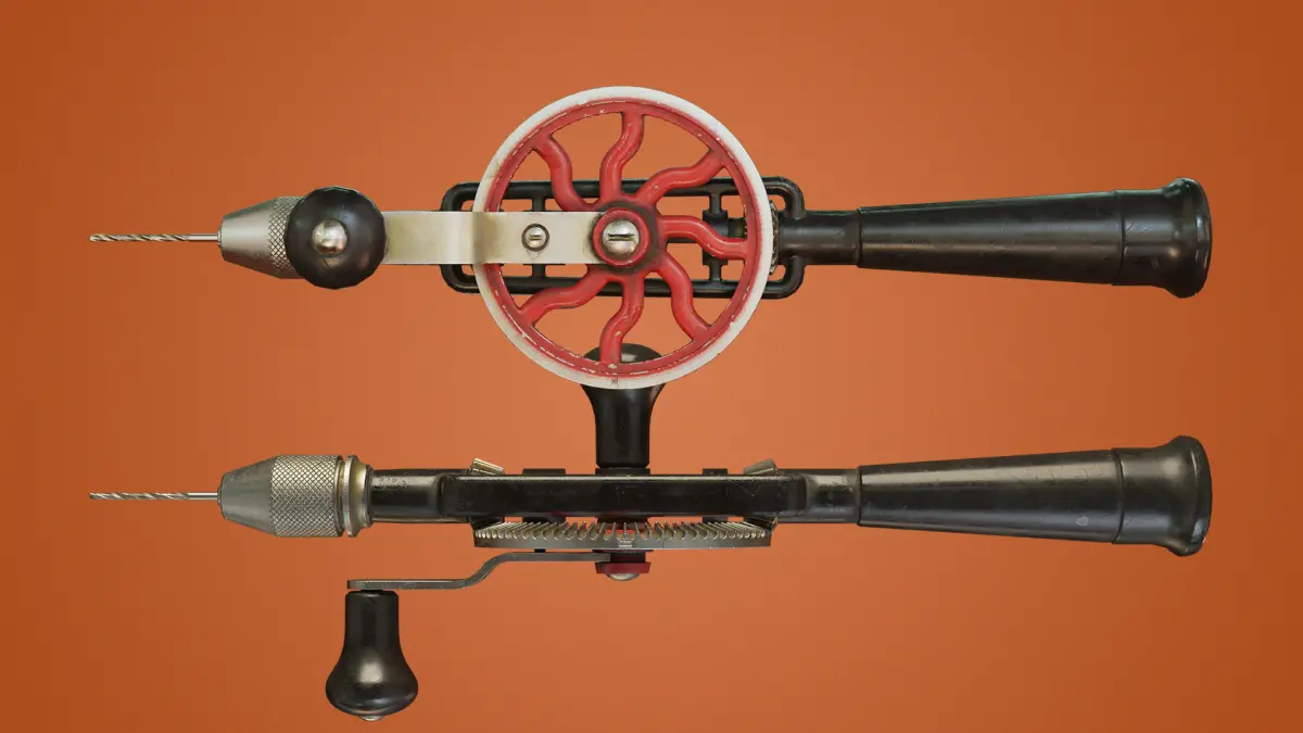 An old Soviet hand drill with peeling paint, dirt and oil stains.The model consists of five moving and 1 static objects. 4k PBR textures.Blender file contains rigged model and simple animation.