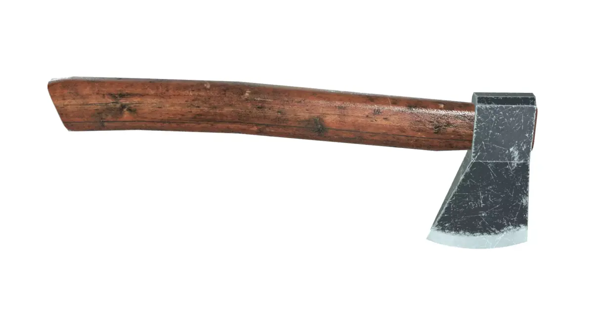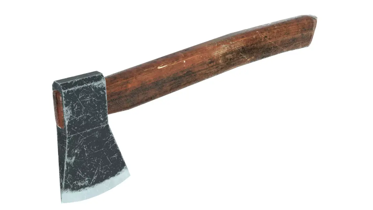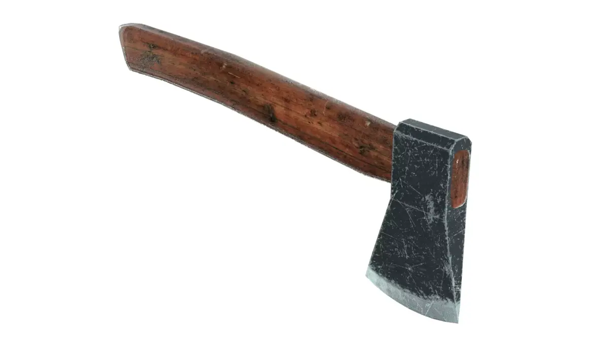 High-quality, realistic 3D model of an old hatchet (axe) with a wooden handle.