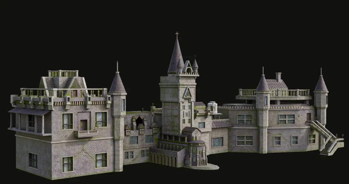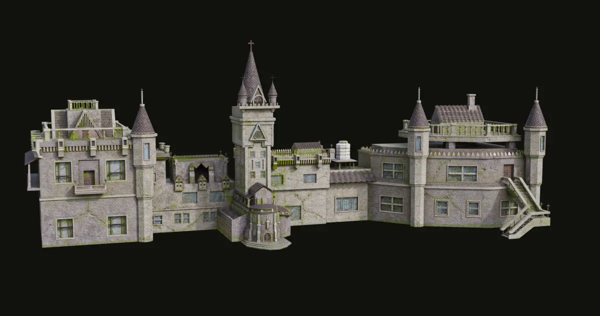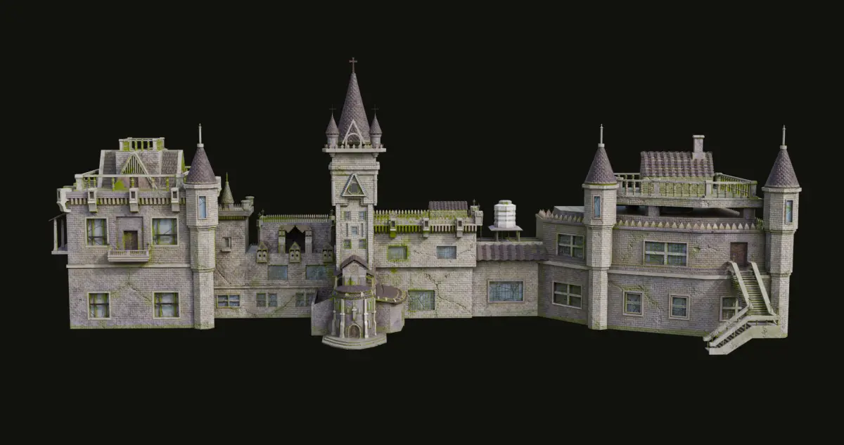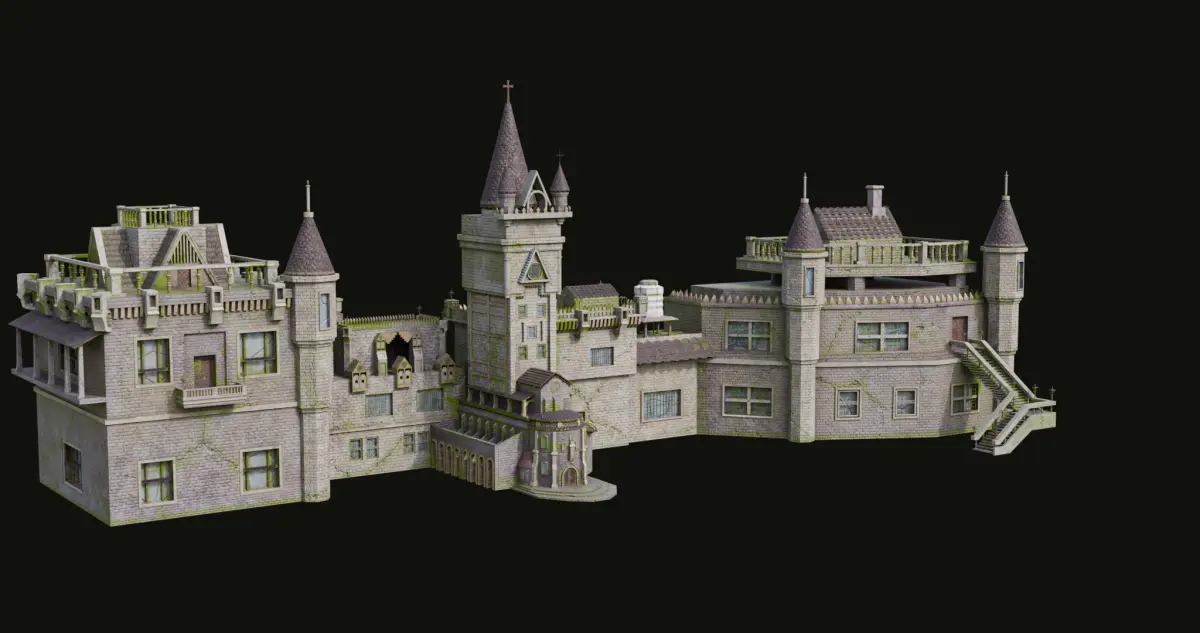 Photorealistic 3D model of Old Haunted Castle. This model is suitable for any visual production - broadcast, high-res film close-ups, advertising, games, design visualization, forensic presentation, etc.