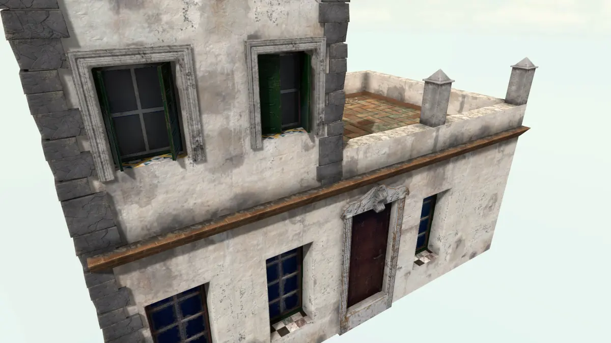 This is a high-quality 3D model inspired by traditional Gaditano-style architecture, typical of southern Spain, especially in Cádiz. These iconic buildings feature whitewashed facades, iron balconies, thick stucco walls, and flat rooftops—evoking Mediterranean charm and historical character.The model faithfully recreates authentic details such as wooden shutters, tiled inner patios, colonial cornices, and narrow windows—perfect for realistic urban scenes, historical reconstructions, or stylized game environments.It includes: A fully set up prefab for immediate use Custom shader setup for stylized or realistic lighting All necessary PBR materials: albedo, normal, roughness, metallic