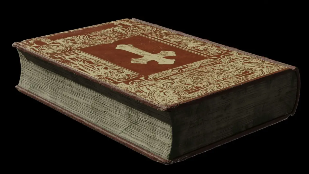 Here I offer a 3D model of the Holy Bible with beautiful ornaments on the cover. The book can be a great asset in the library of the priest or church scene! The book is relatively low-poly with normals baked from the high-poly version. Both are included as .obj files with pages shifted to bake AO. If you wand, you can further sculpt the high-poly version and bake normals to low-poly.