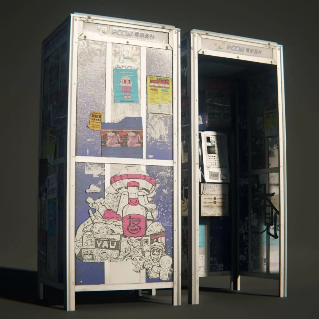 Contents: -TelephoneBooth_FBX-Posters_FBX-TelephoneBooth_OBJ-Posters_OBJ-TelephoneBooth_BLEND -BaseColor_PNG -Roughness_PNG -Normal_PNG -Metallic_PNG -Emissive_PNG -Opacity_PNG-BaseColor_PSD -Roughness_PSD-Metallic_PSD -Emissive_PSD -Opacity_PSD