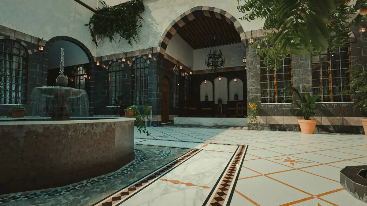 A detailed 3D model of a traditional Damascene house interior (Liwan + Courtyard), featuring authentic Middle Eastern architecture. This model includesclassic stone textures, ornamental Arabesque details, and a central fountain (Bahra), capturing the spirit of Syrian heritage. Perfect for: Podcastbackgrounds Virtual tours & cultural visualizations Historical games & 3D environments Comes fully equipped with: Real-world scale Clean topo PBRtextures included Blender & GLB formats Organized and render-ready files Whether you're building a virtual heritage space, a visual podcast set, or a MiddleEastern game level — this model offers a visually rich and optimized asset.