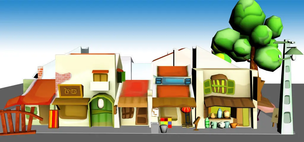 More than new 18 objects +23 cartoon style models including buildings , trees & two road,new signboard , new tree , new lighting, new barie woodold stress and styles cartoon size512 x 512 , 1024 x 1024 texturesLow poly, great for mobile