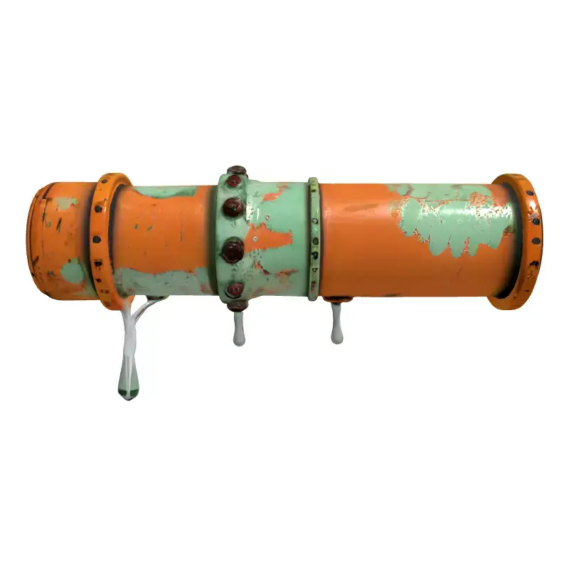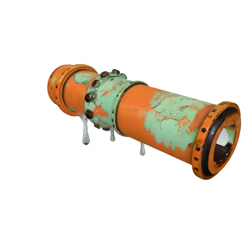 This highly detailed 3D model presents a weathered industrial pipe segment, characterized by its authentic aged appearance. The model features rich, rusty copper-like textures, complemented by areas of peeling green paint, conveying a sense of extensive wear and tear over time. Distinctive dripping elements add to its realism, suggesting a leak or exposure to moisture, perfect for creating immersive, atmospheric scenes. This asset is ideal for various applications, including game development as an environmental prop, architectural visualization of derelict or steampunk-themed structures, and digital art compositions. It is also well-suited for augmented reality (AR) and virtual reality (VR) experiences, offering a realistic touch to virtual worlds. The model is optimized for high-quality static renderings and can be adapted for real-time applications, featuring clean topology and efficient UV unwrapping. It comes with PBR textures, ensuring consistent material fidelity across different render engines. Supported file formats typically include GLB, OBJ, STL, ABC, DAE, FBX, USD, and PLY, providing broad compatibility. Its intricate details and aged aesthetic make it a versatile asset for a range of digital projects.