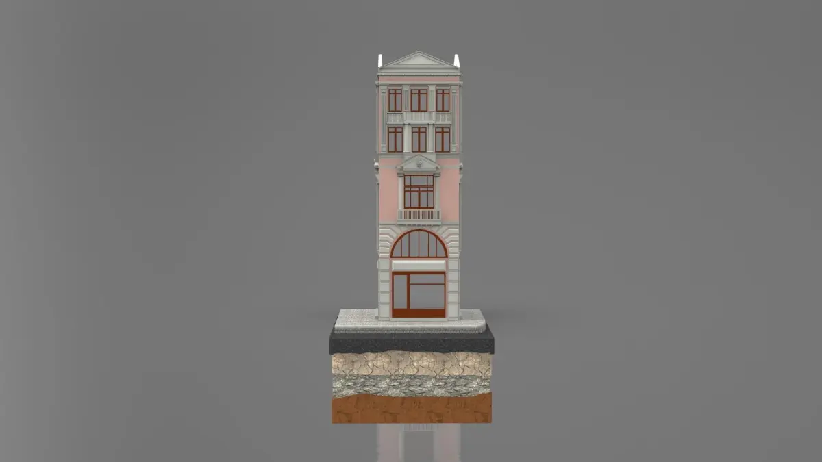 -Old Istanbul Taksim-Istiklal street stone building-1800-1900's era-Mid poly-Part of a big street, train station, and square-Tram station