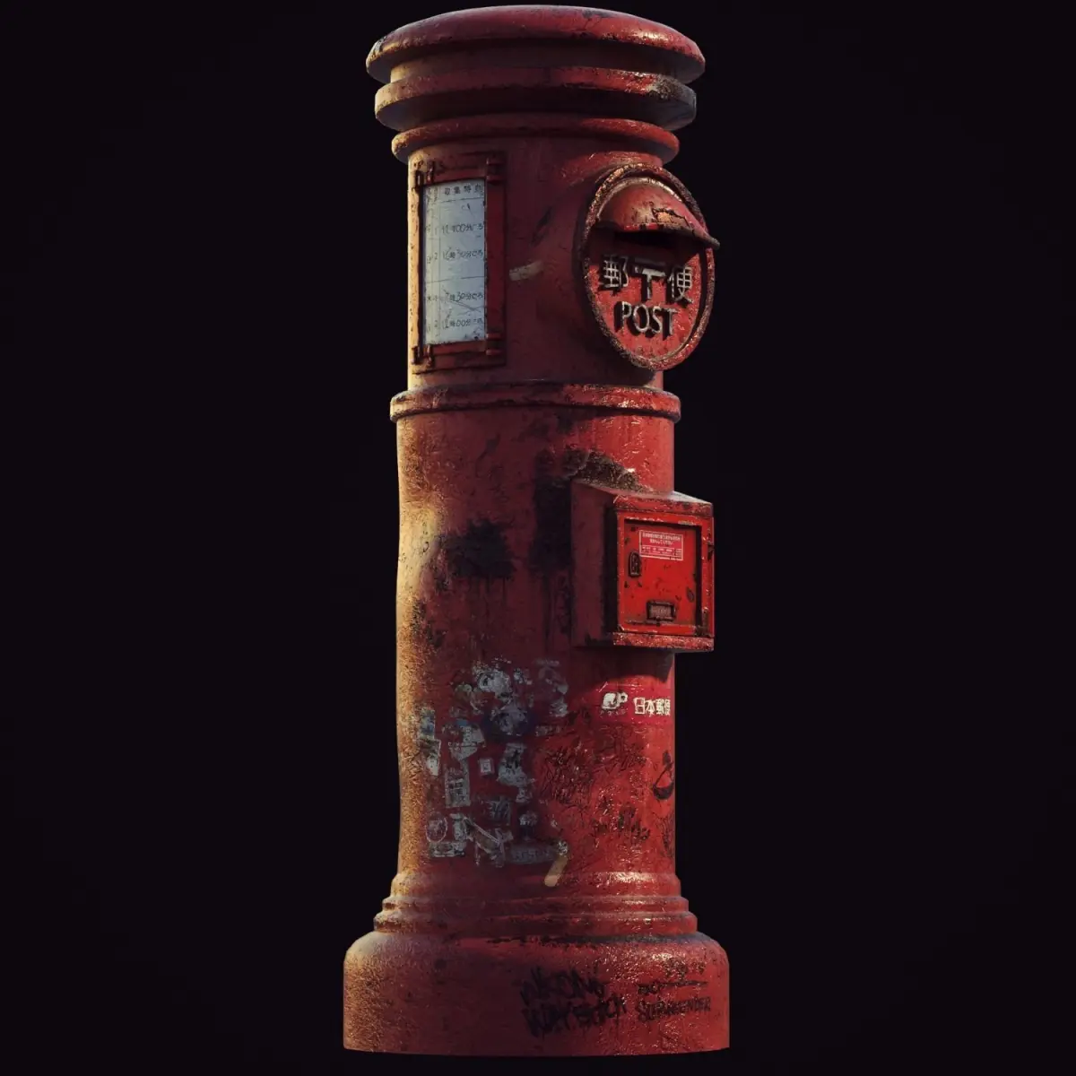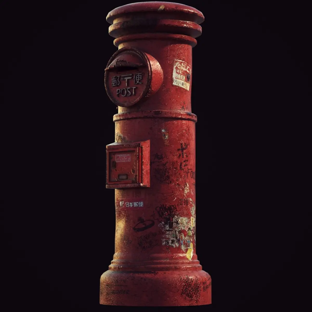Highely detailed Accurate Iconic street prop of a Japanese mail post for environement creation.