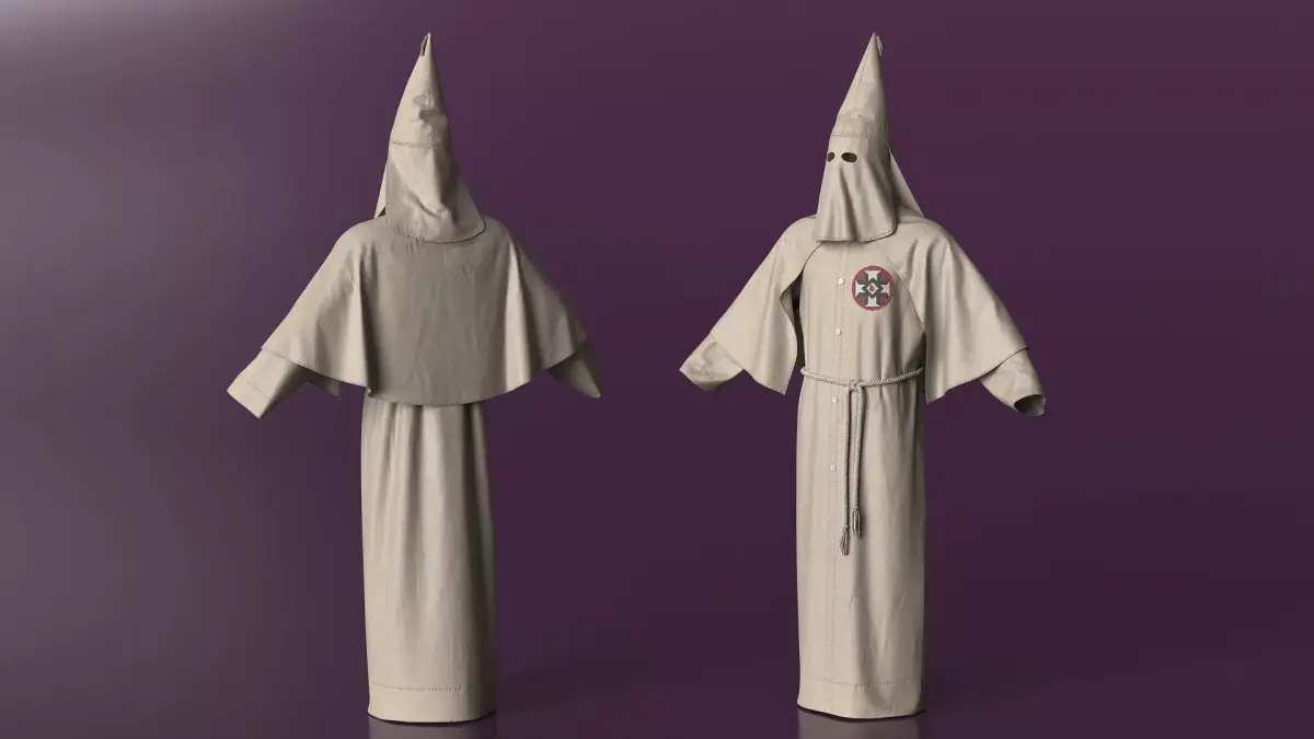 Old Ku Klux Klan Outfit is a 3d model of a traditional attire worn by members of the Ku Klux Klan, a white supremacist group that originated in the United States in the 1860s.