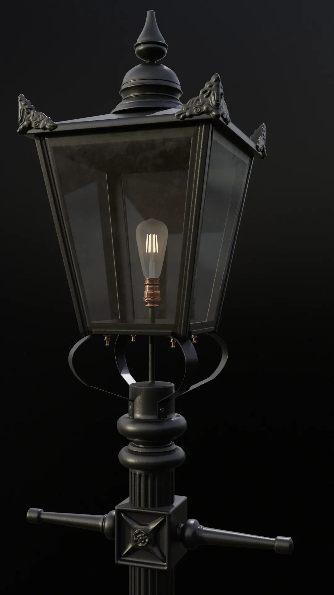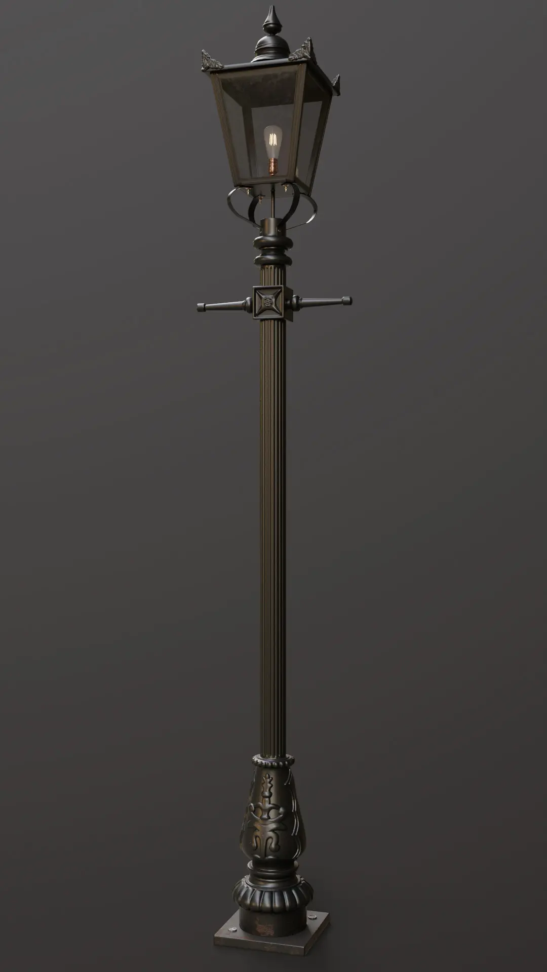 An old lamp post with an emissive ST64 6W bulb.Only quads, geometry made using Blender and Zbrush.Unwrapping in Rizom UV, no overlaps.PBR model textured in Painter with .png 4K 8bit Color/Roughness / Metalness / Normal / Opacity and Emissive maps provided.Perfect for realistic outdoor scenes.