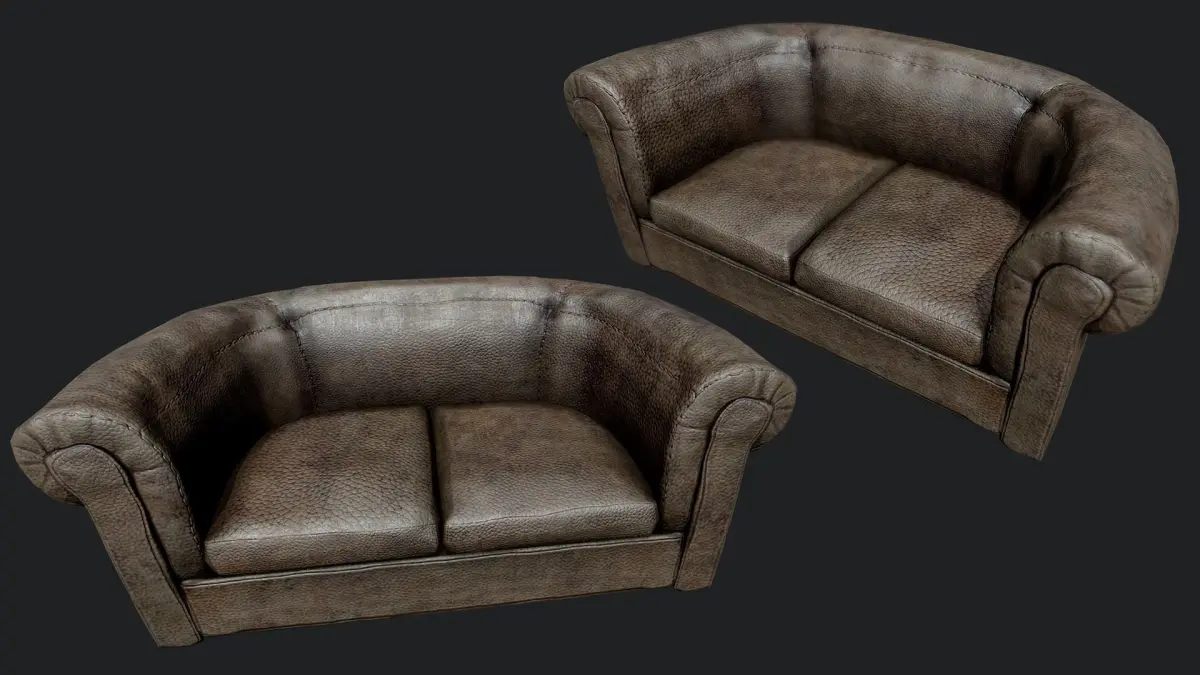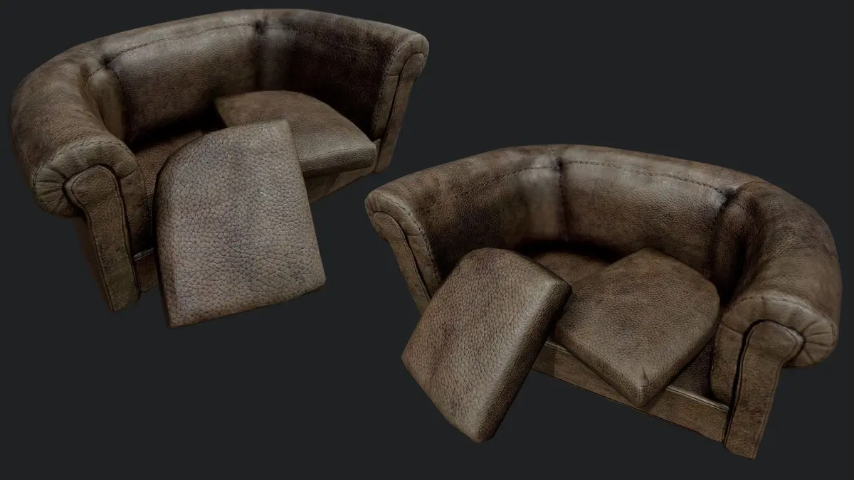 Very Detailed Low Poly Old Leather Couch / Sofa with High-Quality PBR Texturing.