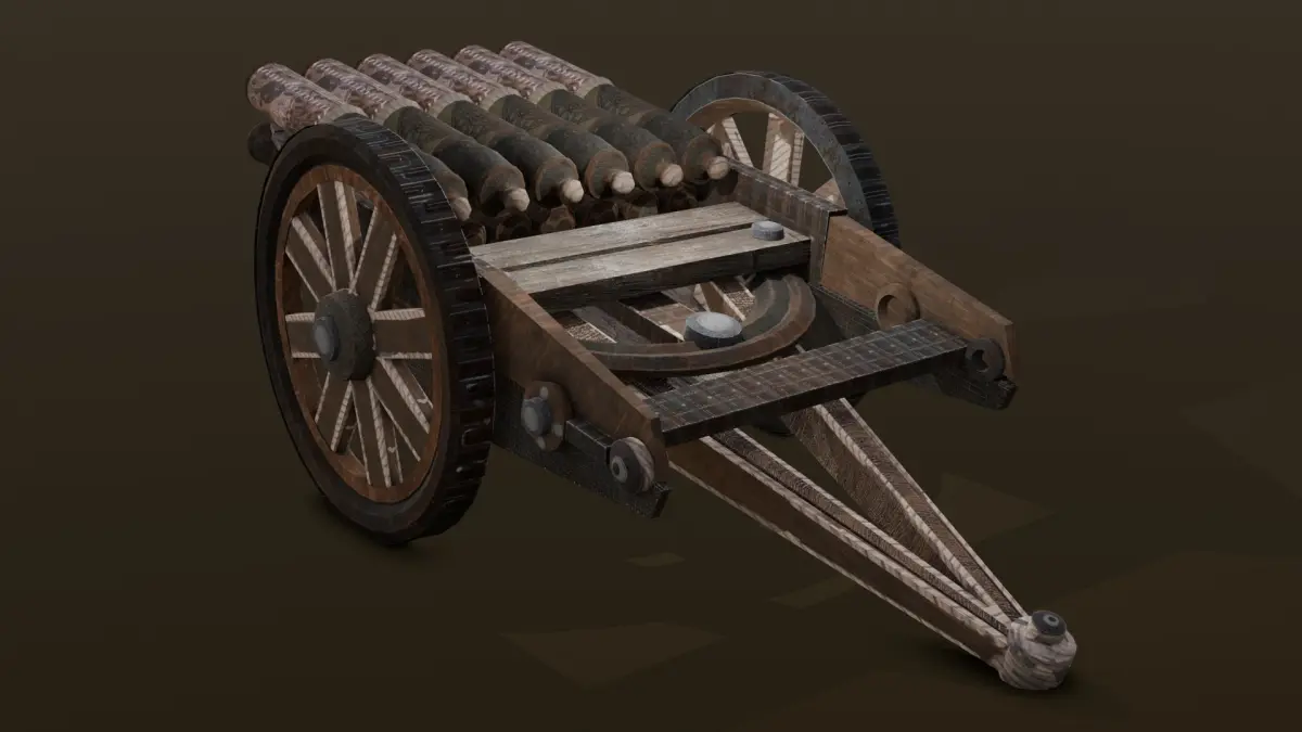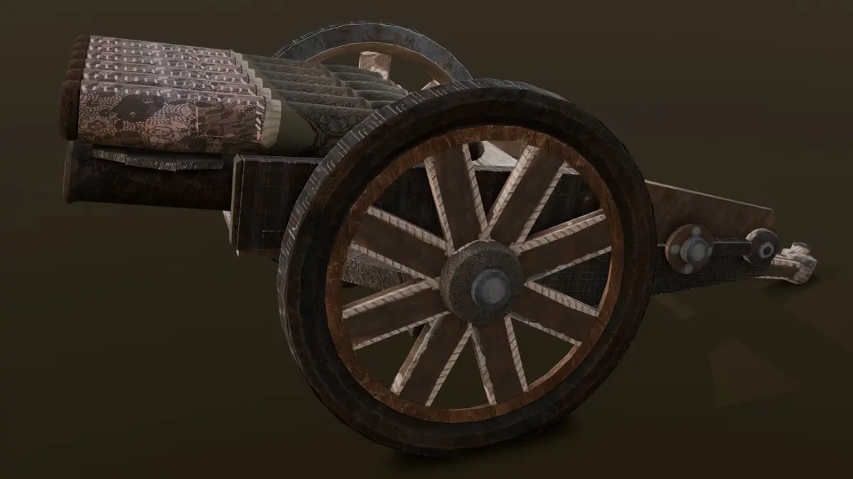 Textures: Applied textures bring realism by simulating wear, surface imperfections, and material aging. These high-resolution textures enhance the historical and mechanical look of the model.Materials: Multiple materials are used to replicate the properties of different surfaces like metal and wood, giving the model an authentic feel and realistic shading.Animation and Rigging: