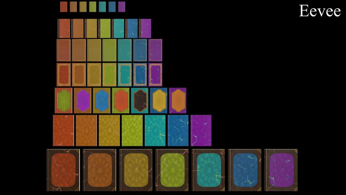 The collection consists of 49 books: 7 sizes in 7 colors