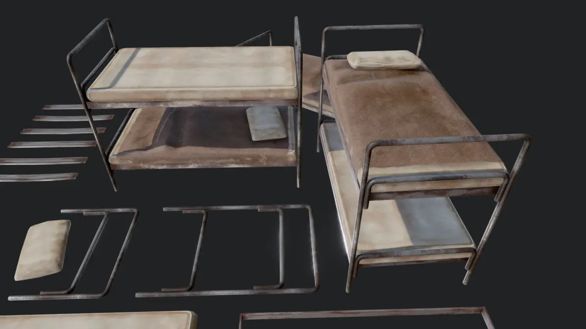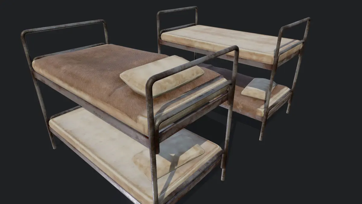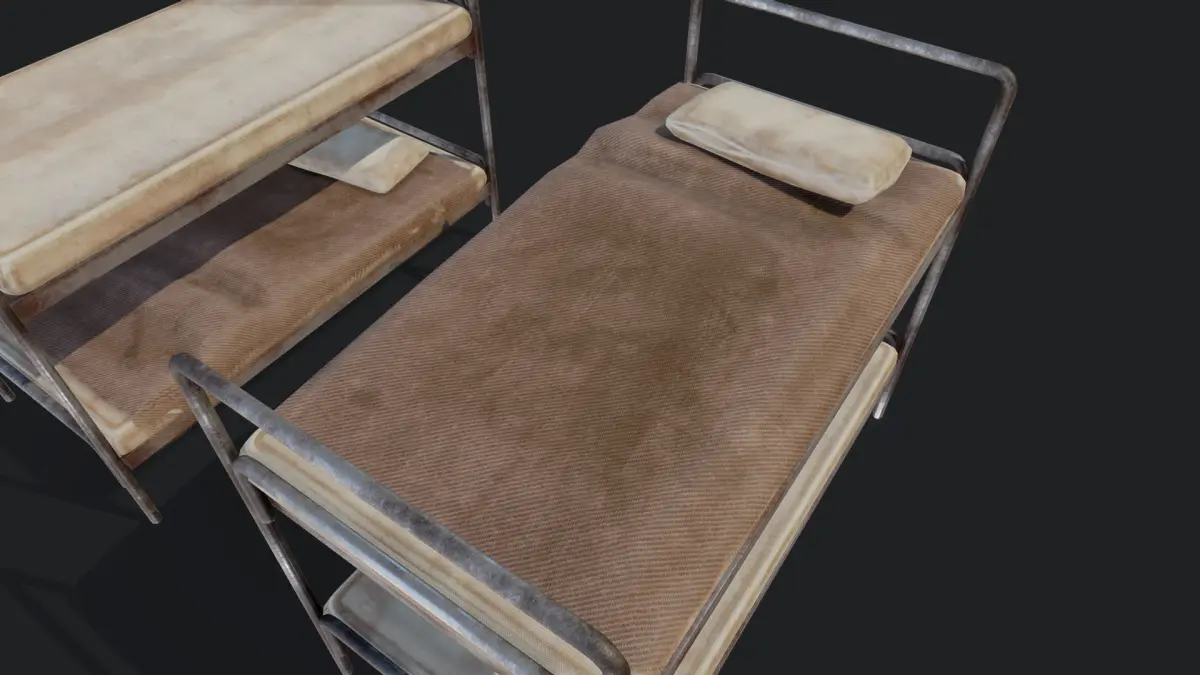 Here is a Old Metal Bunk you can use as environment object, we have designed this objects so you can put more objects in your room.