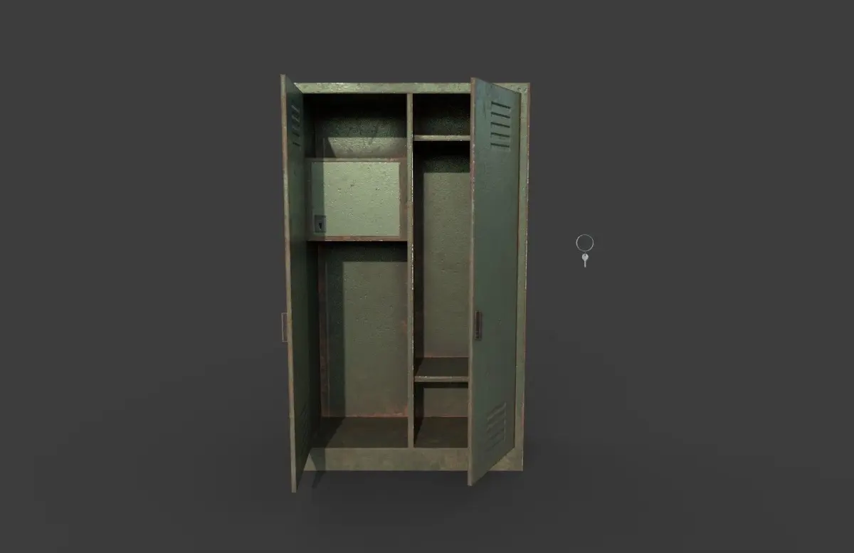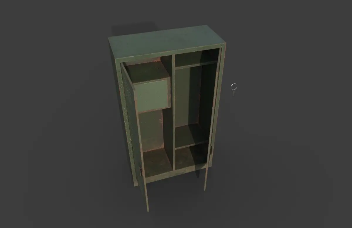 3D Low-poly Old Locker with key modeled in Maya and textured in Substance Painter, ready for games.