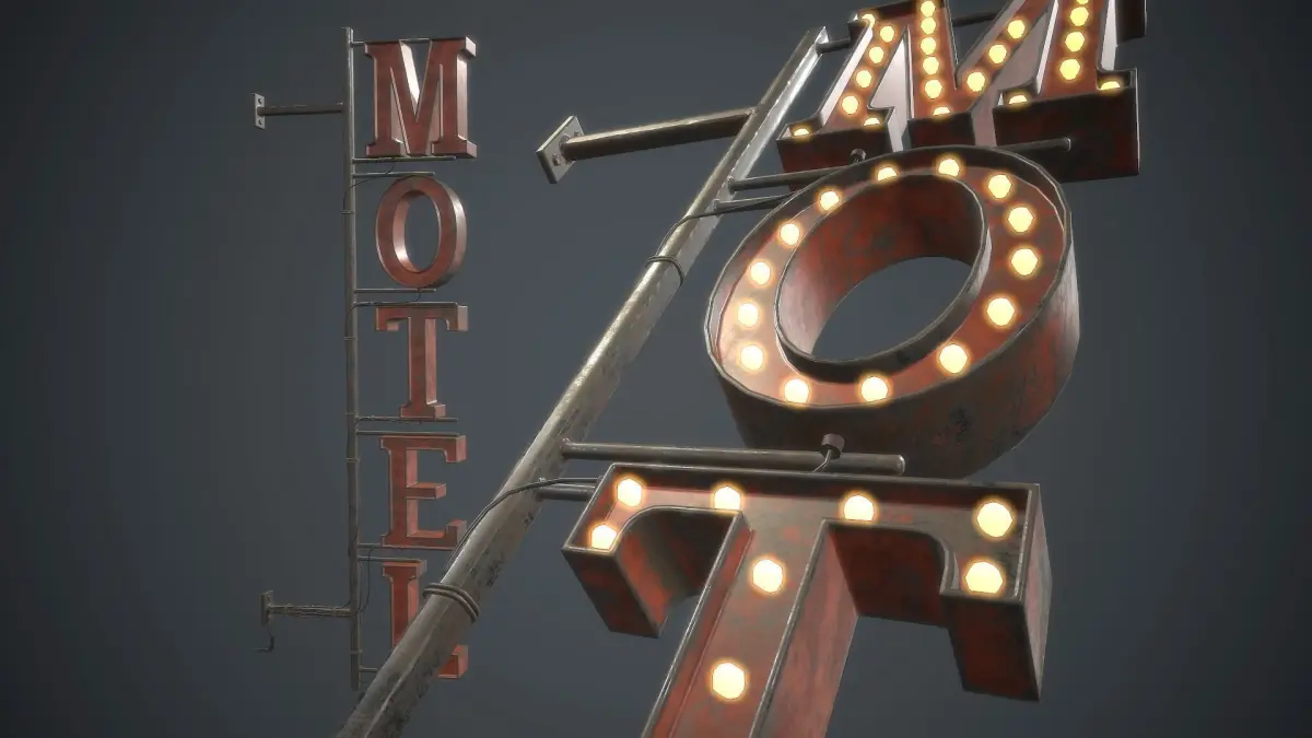 Low poly Motel Sign with PBR Textures.