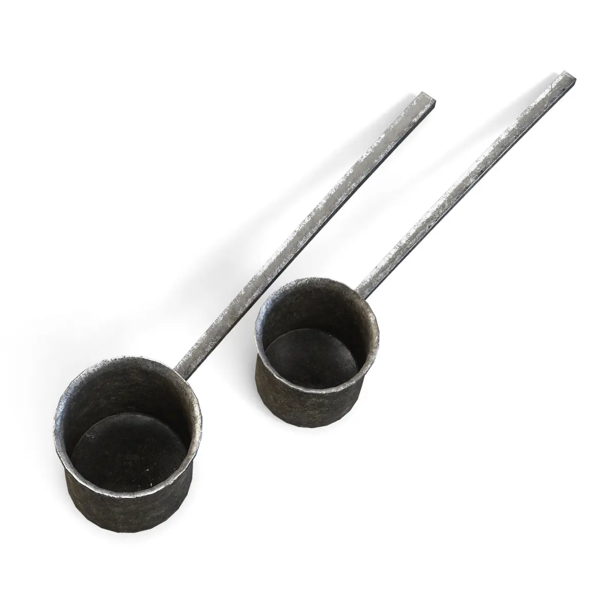 Old scratched metal forge scoops.