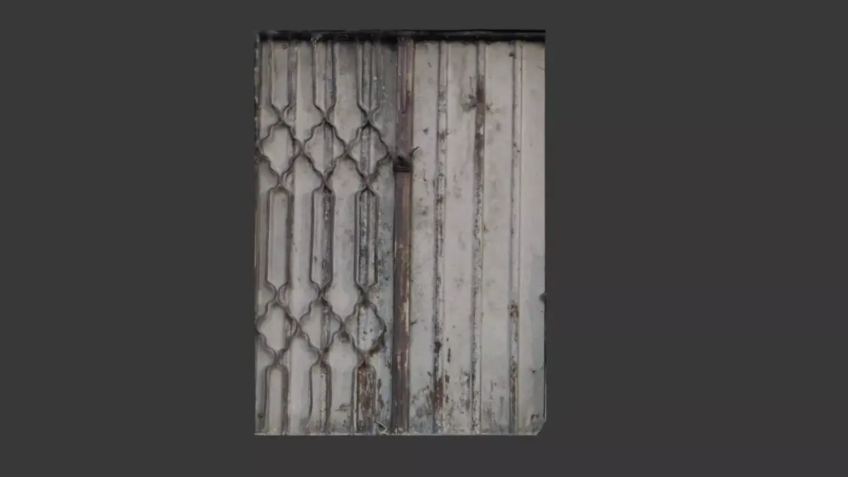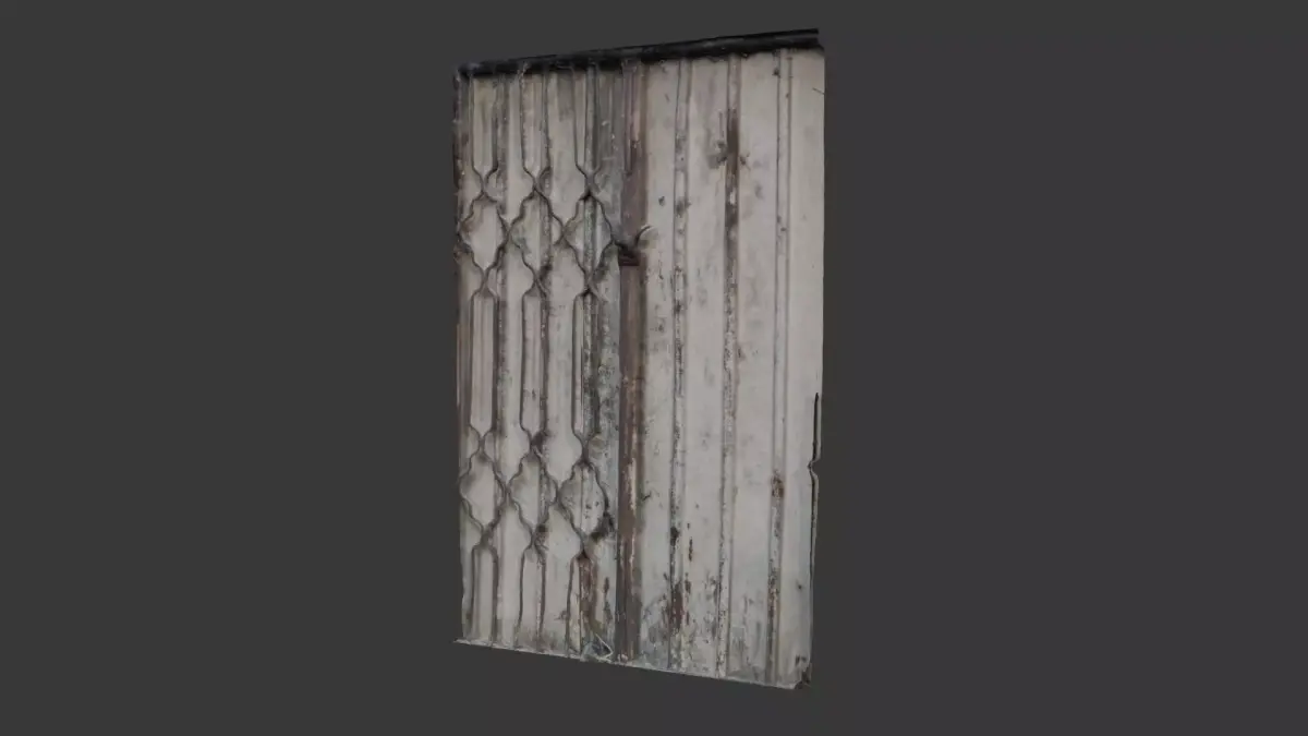 Highly detailed 3D scan of an old, collapsible metal security gate with visible rust, chipping paint, and weathered surface details. Ideal for urban environments, abandoned buildings, industrial scenes, or as a detailed prop for realistic or post-apocalyptic projects. The model is provided in multiple formats (BLEND, FBX, OBJ, GLB, USD, STL) and includes 4K PBR textures for seamless integration in any pipeline.