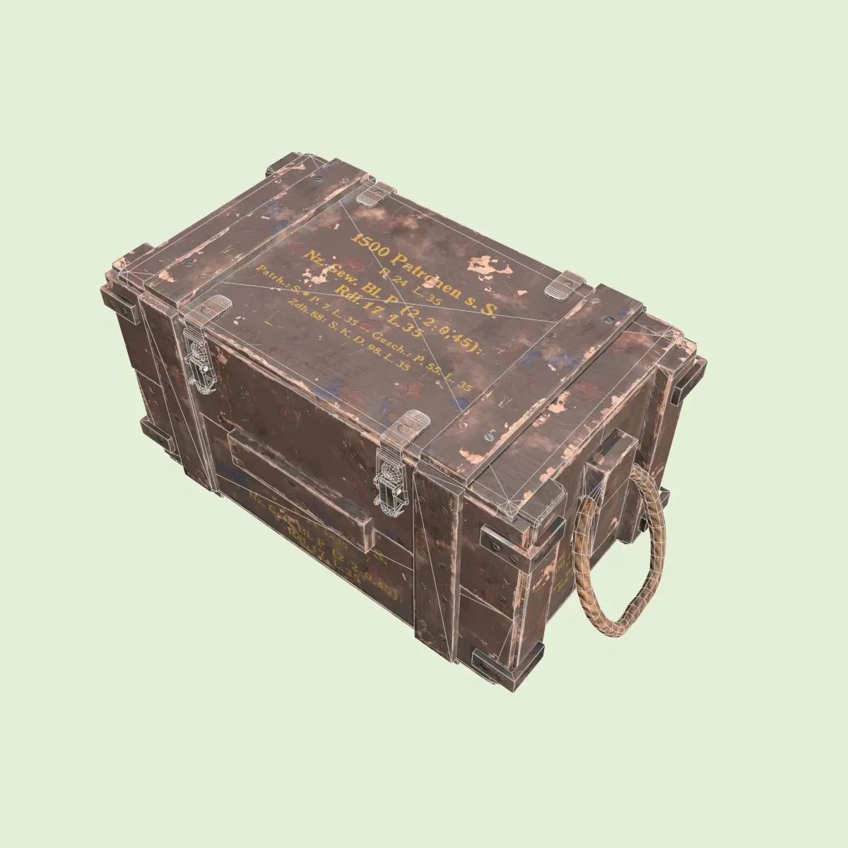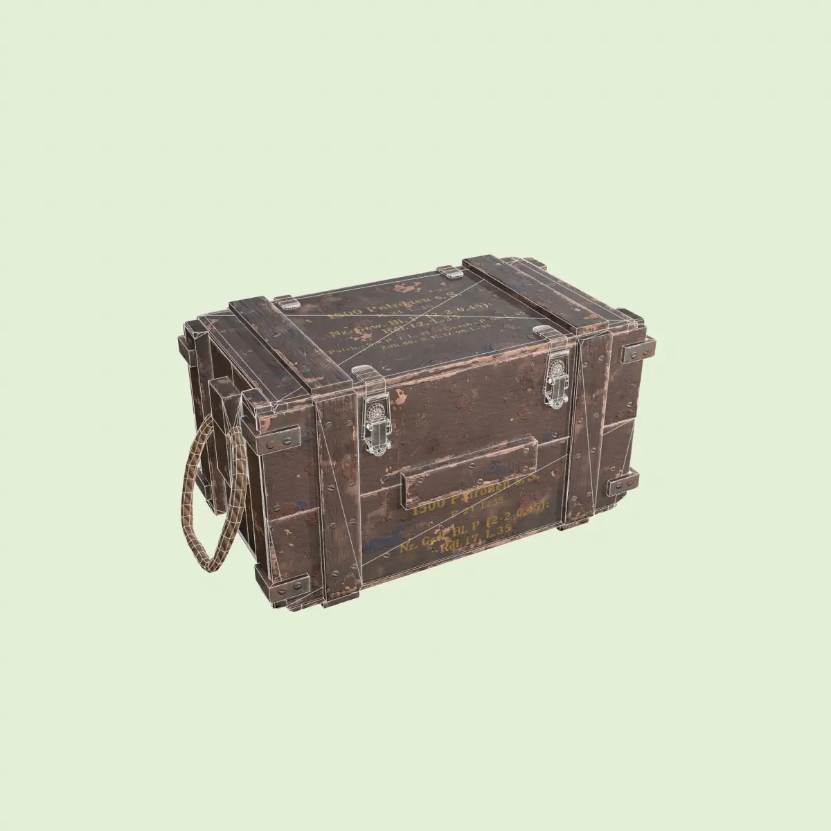 Highly detailed photorealistic lowpoly old military box textured in Substance painter, rendered in Marmoset Toolbag whith Unreal material.4096x4096 textures.