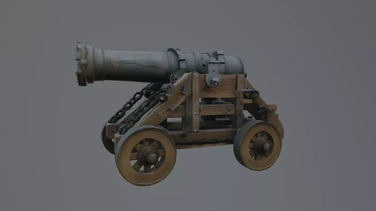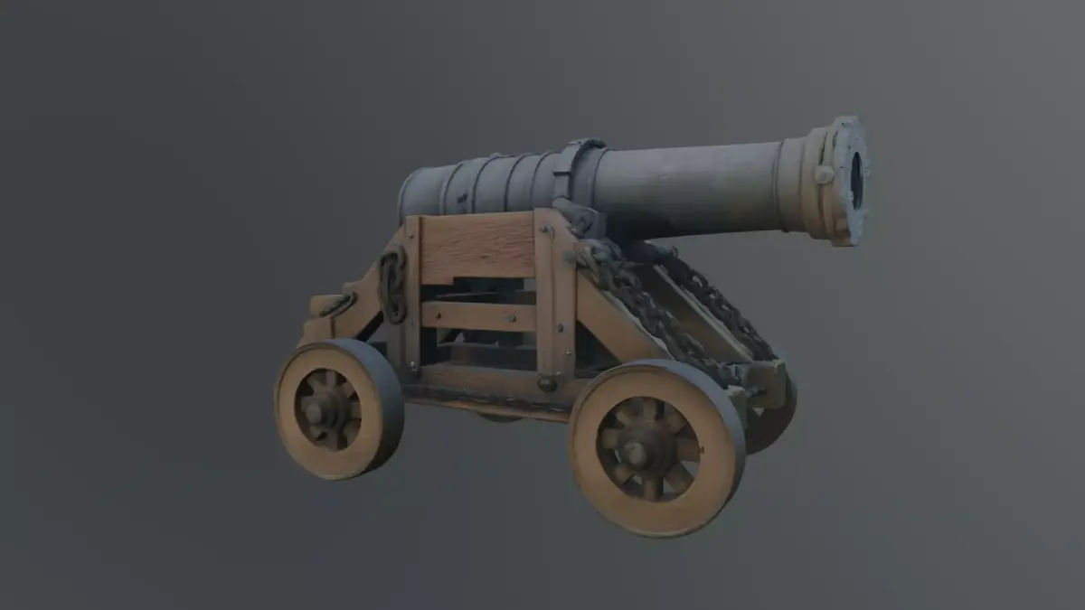 this cannon prop is designed with a focus on historical grit and realistic textures. The wood grain on the carriage shows age and wear, while the metal barrel features subtle oxidation and casting marks. This asset is game-ready and optimized for seamless integration, provided in Blend, FBX, and OBJ formats