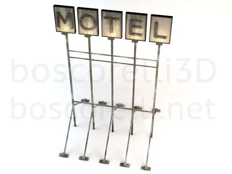 - high-poly detailed model for films, animations and visualization projects- UV mapped and Textured 2048x2048- BAKED model included (easy and flexible use with other 3D softwares) with 2K 2048x2048 color, normal and diffuse texture maps- Lights are separate elements therefore they can be set independently- Motel text is geometry not texture / it’s on both sides- models prepared for day and night renders in C4D / lights turned off by default