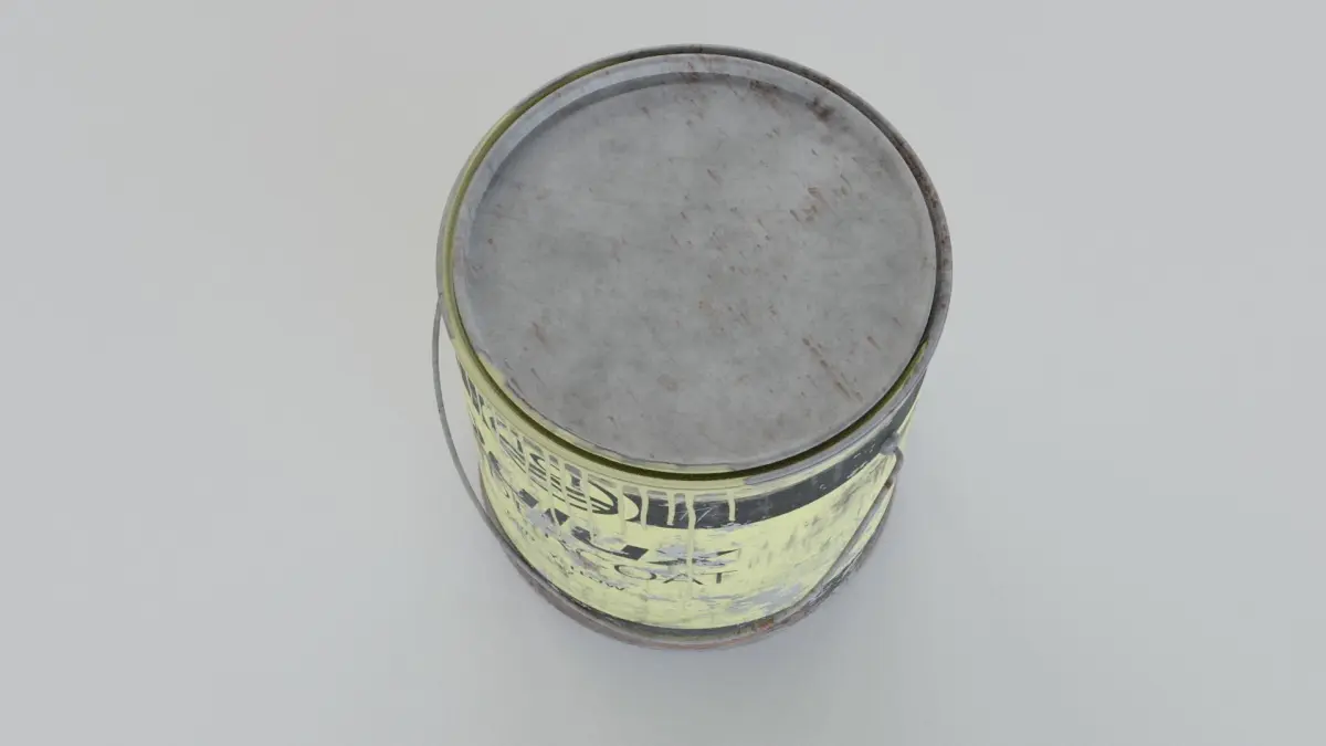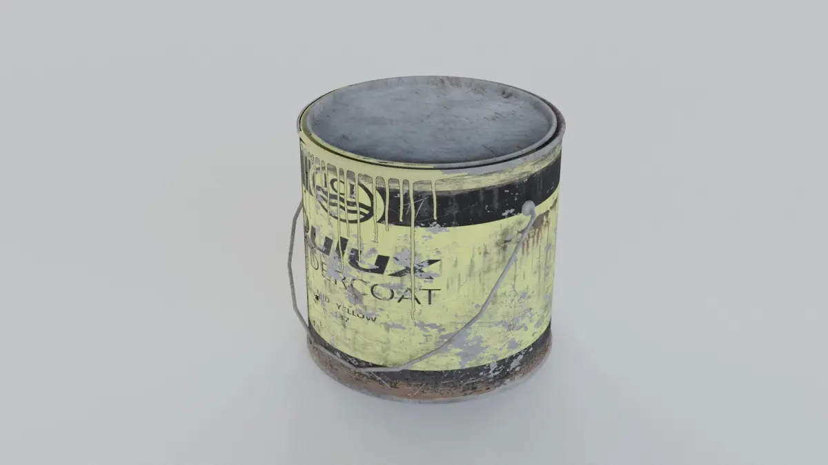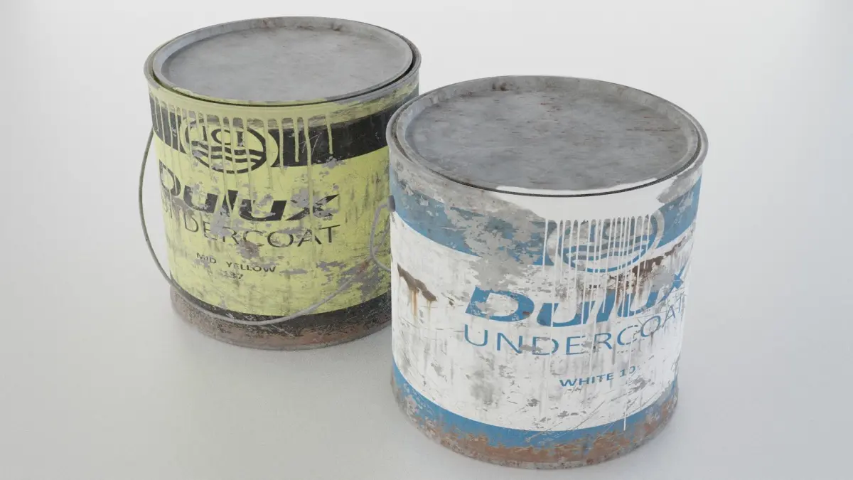 The paint tins are low poly with 4K PBR textures (diffuse, roughtness and normal maps).