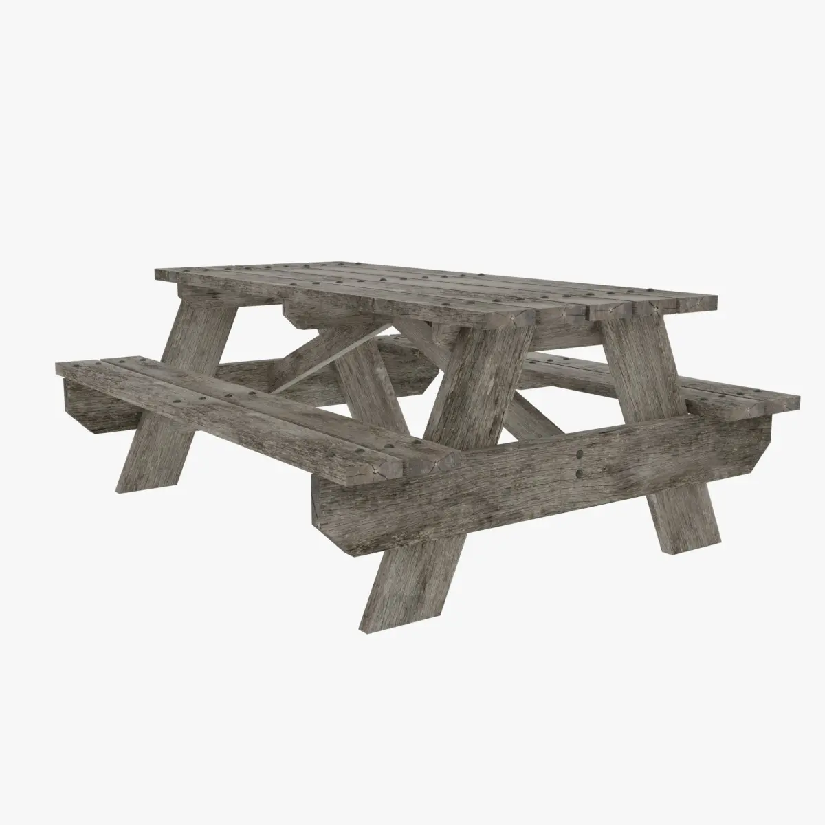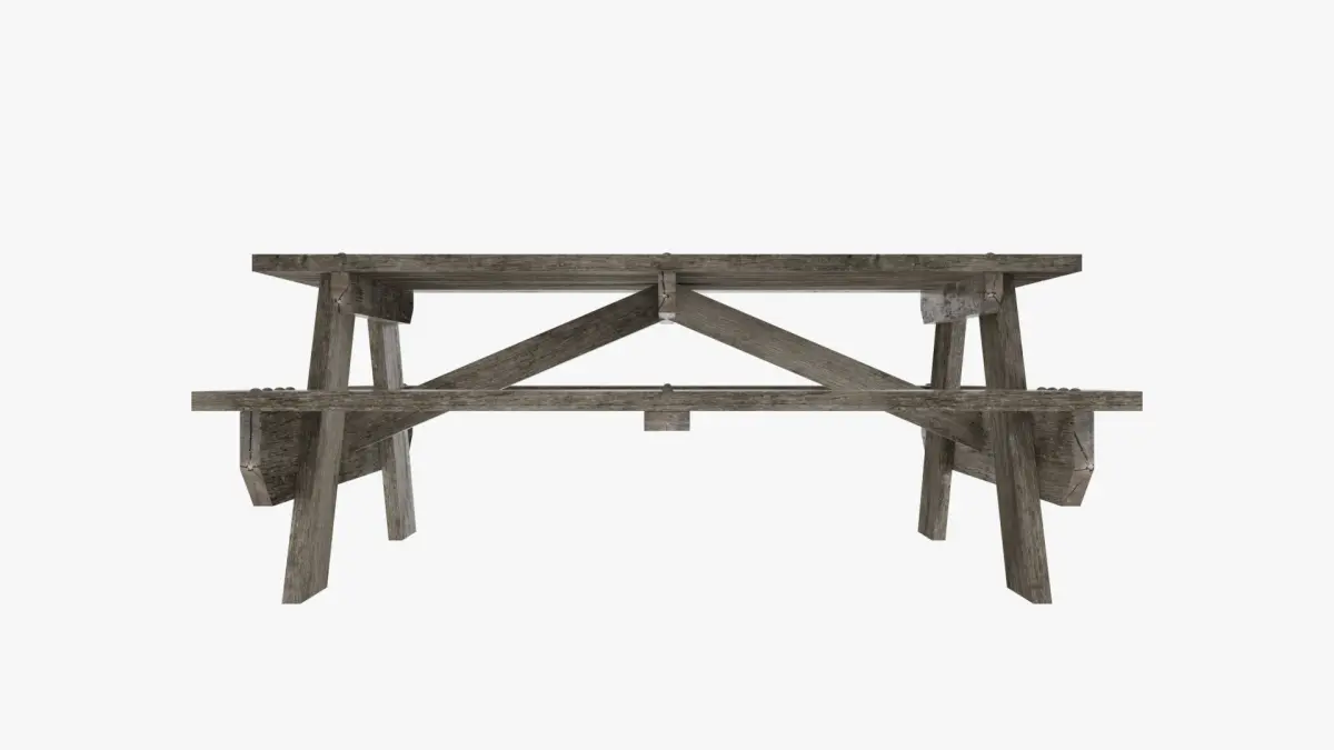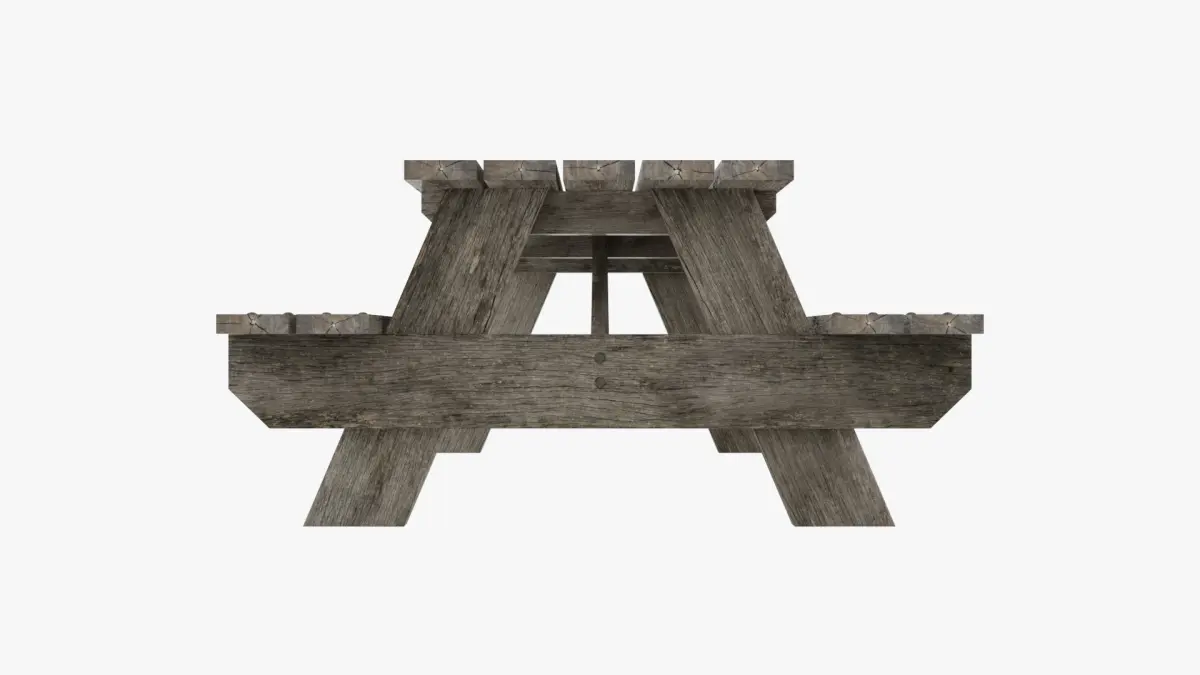 A detailed and realistic weathered wooden picnic table perfect for outdoor scenes.