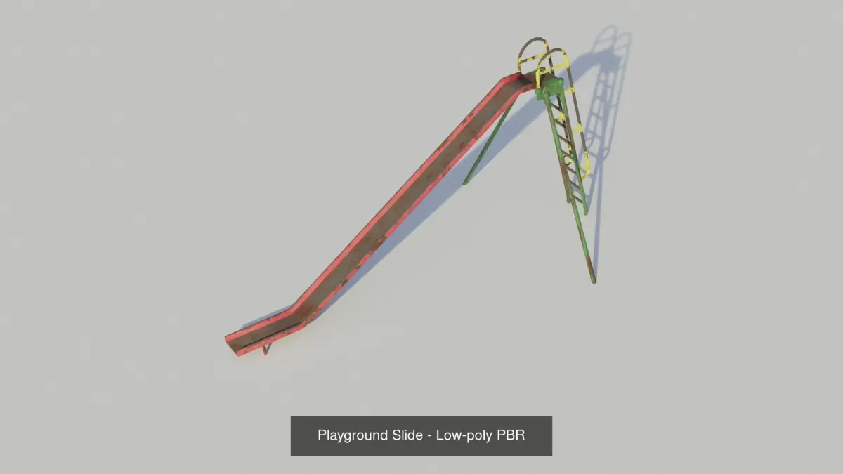 The playground models are texture to look old and worn with rusted and painted metal. They are styled on vintage playground equipment.
