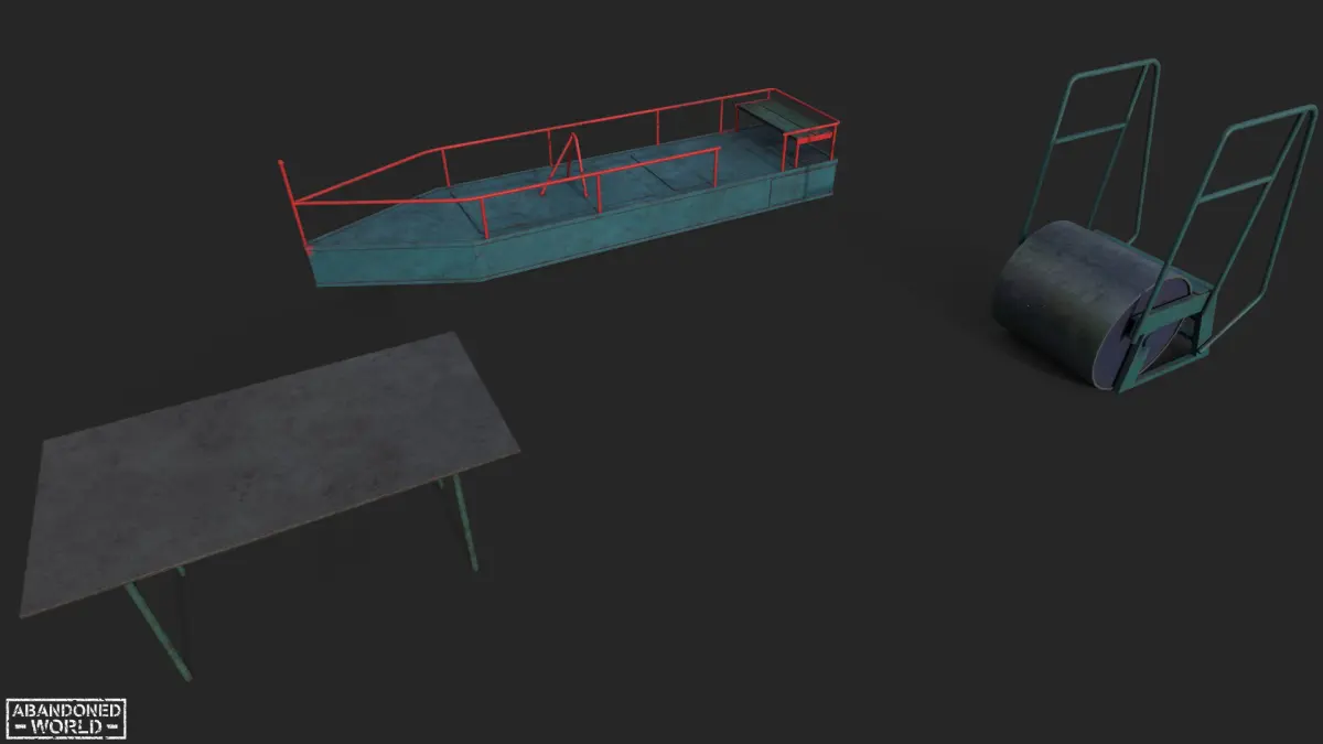 A set of objects for creating scenes with old playgrounds in the post-Soviet style. The set contains objects for a playground that could be found in post-Soviet countries. An artificial wooden ship, a simulator drum for running on the spot and a metal table. Perfect for the Unreal Engine and Unity.