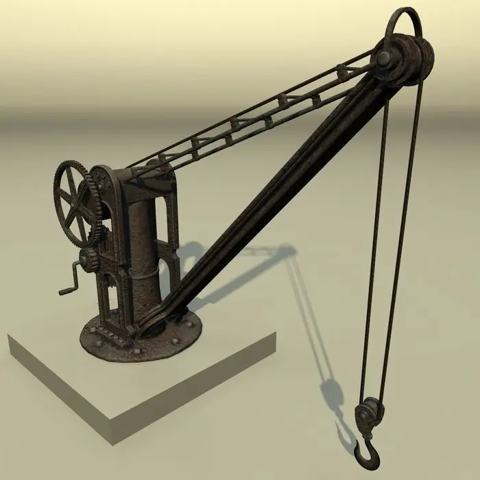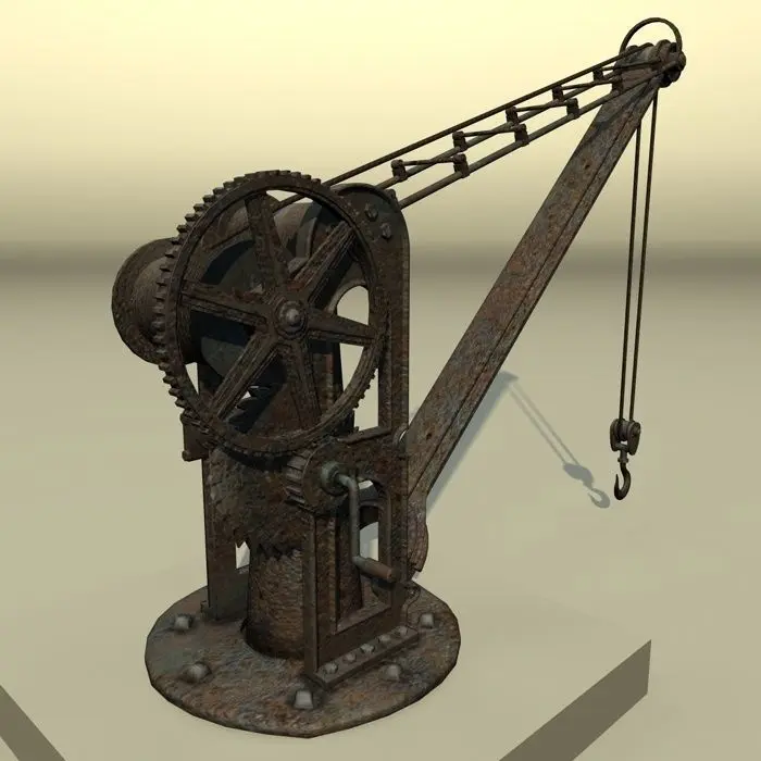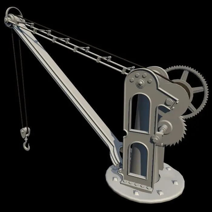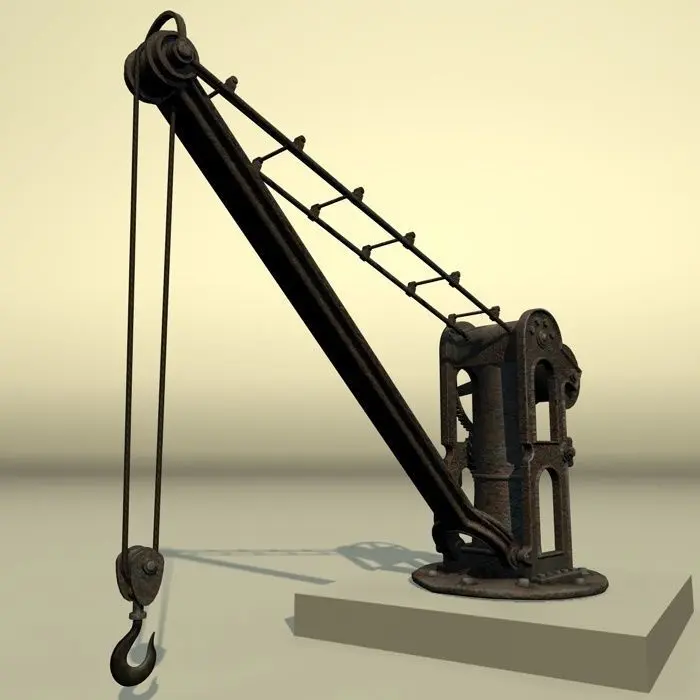 Detailed old port crane for loading and unloading goods. London, nineteenth century. The model can be used in scenes with the port, factory, etc. The model was made in Cinema 4D. It is also available in other formats.