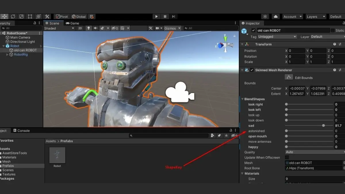 Suport for unity, rigged, facial animation in shapekey