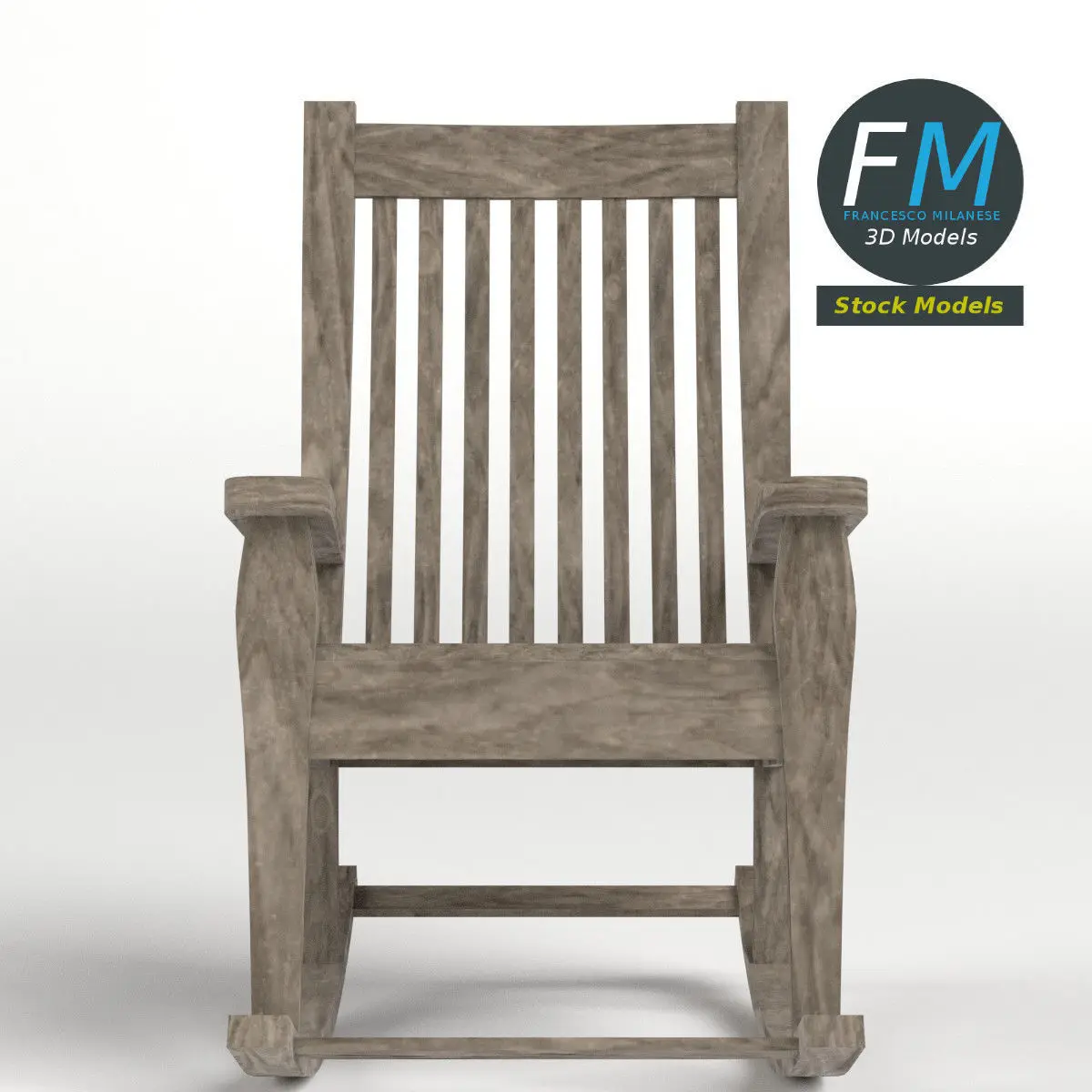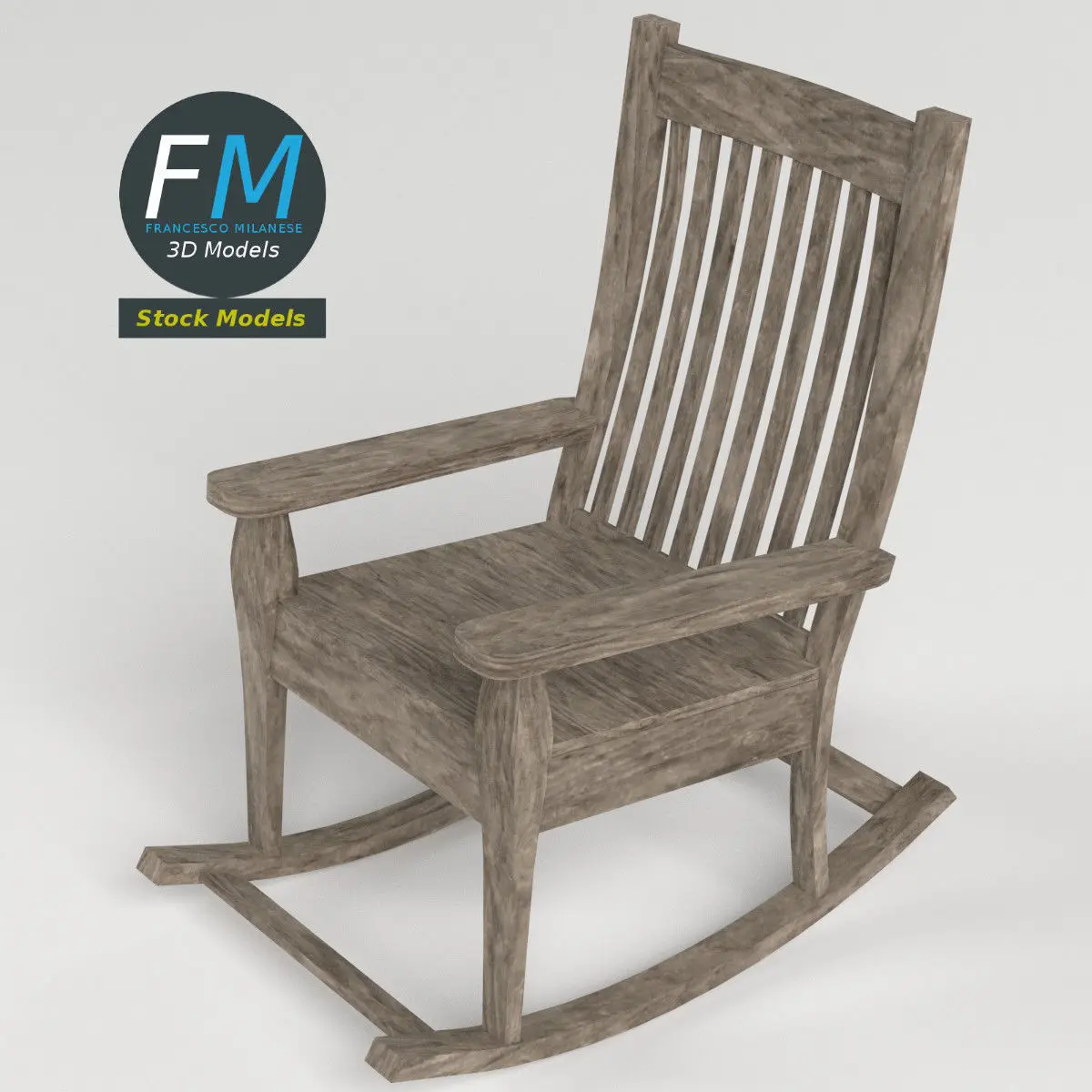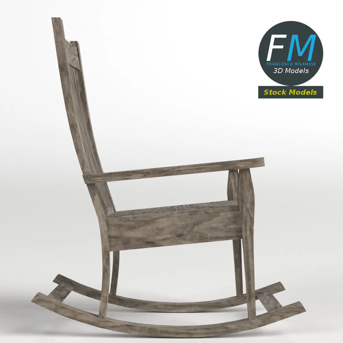 Old rocking chair 3D Model. Production-ready 3D Model, with PBR materials, textures, non overlapping UV Layout map provided in the package.Quads only geometries (no tris/ngons), no poles.Easily customizable: UV unwrapped geometries, so you can create new Textures (or modify the existing ones) using the UV Layout maps provided in the package (as png with alpha).Each Object, Material or Texture provided in the package has a unique, meaningful name.Made in Blender 3D 2.79 (Cycles materials) then exported to OBJ and FBX; materials and textures made in Substance Painter, exported for PBR, V-Ray, Unity, Unreal.PROMO IMAGES: the first image has been rendered in Cycles for Blender 3D 2.7x; in particular, you can find 11+ promo images in this description: