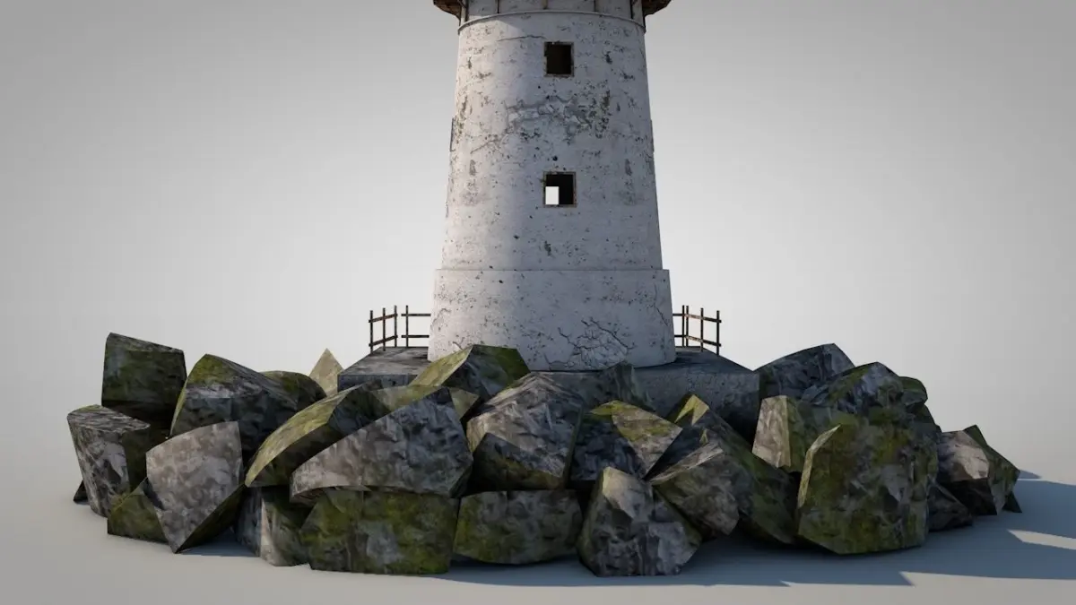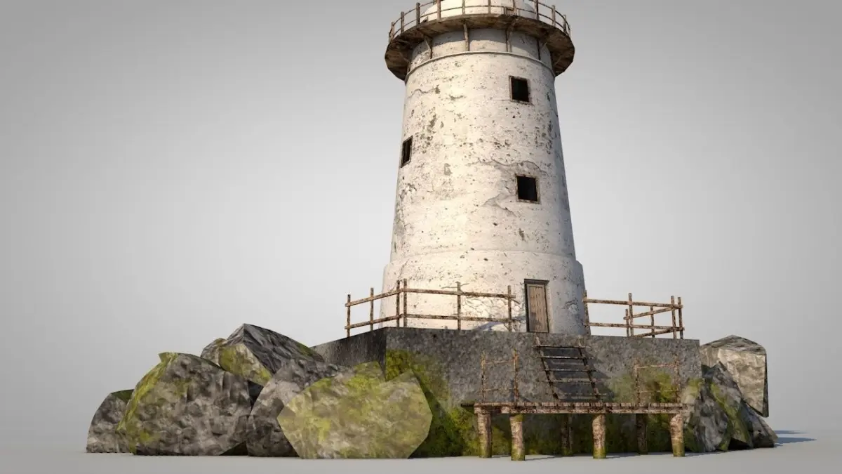 OLD LIGHTHOUSE ON ROCKS