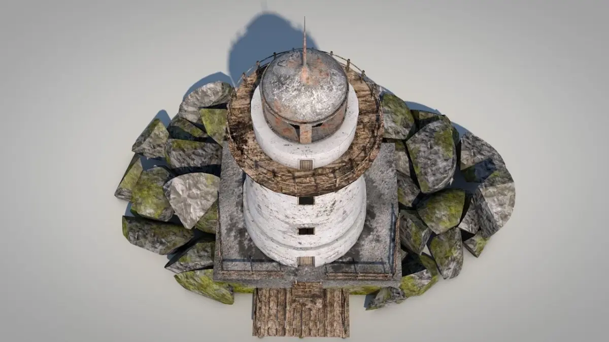 Lighthouse means the LIGHT. You should use some spot lights with dust and turbulence. Do not forget to force your luminance channel to the upper values for the light object itself.