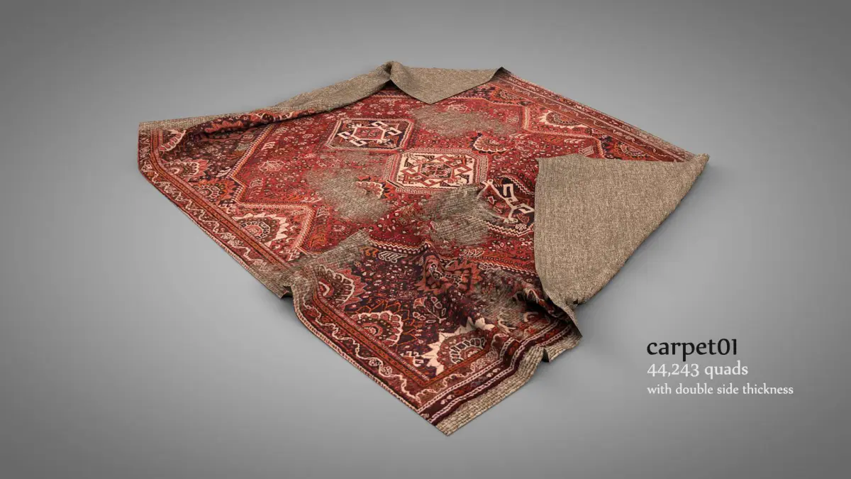 rugs.BLEND is the main file for Blender users. All objects in the scene together, no separations. This needs TEX folder for texturing.