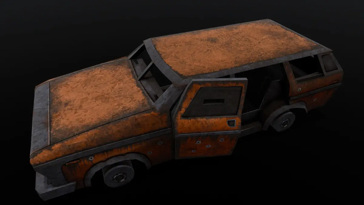 Geometry SpecificationsPolygons: 2,061Vertices: 1,340The geometry of the model is constructed using a combination of quads and triangles. This hybrid approach ensures both efficient rendering and high-quality visual detail, making the model versatile for different rendering engines and applications.Texturing and MaterialsTextures: The model is enhanced with carefully applied textures that provide a realistic appearance of rust and damage, giving the car a worn and abandoned look.Materials: Various materials have been utilized to define the surface properties of the car, including the rusty metal, broken glass, and deteriorated rubber. These materials contribute to the overall realism of the model.Animation and RiggingRigged: The model is not rigged, meaning it does not have an internal skeleton for posing or animation.Animated: The model does not include any pre-defined animations.UV MappingUV Mapped: The model employs UV mapping to ensure that the textures are correctly and precisely applied to its geometry. This technique enhances the visual fidelity and realism of the model by accurately aligning the texture details with the model's surfaces.Usage and ApplicationsThis Rusted Broken Car 3D model is ideal for a variety of uses, including but not limited to: