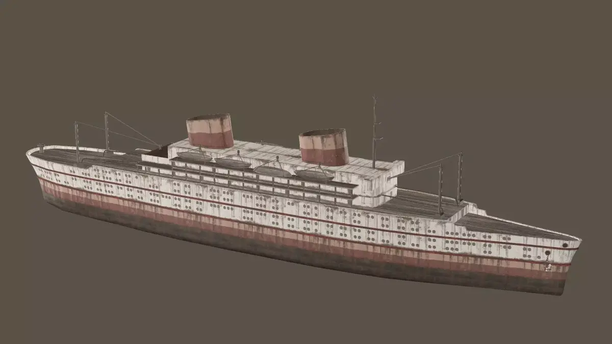 Old Rusted Steam Ship Low Poly 3D Model An original passenger ship model based on the steam ships of the early 20th century.Modelled in Blender strictly using quad polygons.Ship interior has not been modelled (exterior ship only as seen).The ship was built in real world scale.Materials applied to model are basic and are only native to the .Blend file.When triangulated,