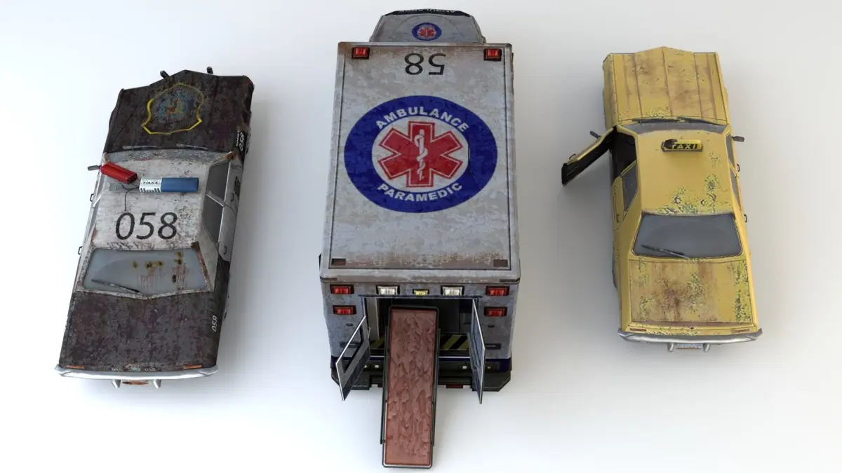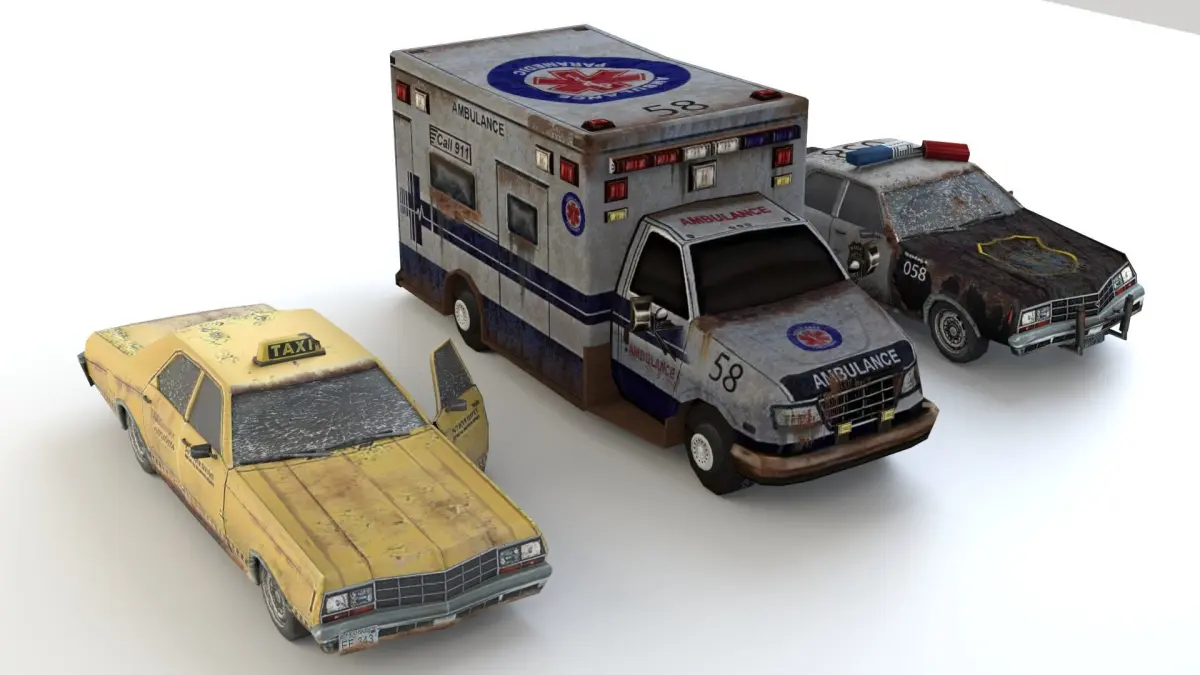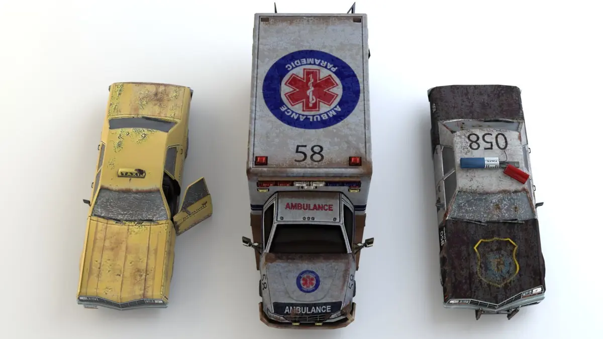 Old Rusty ambulance, police and taxi car mini pack