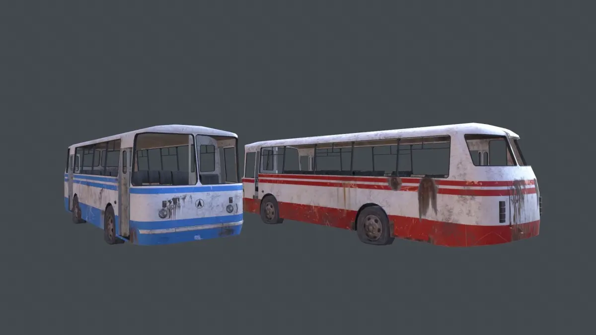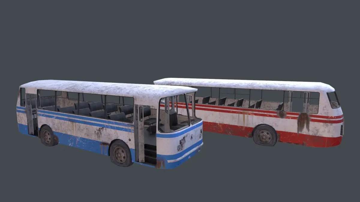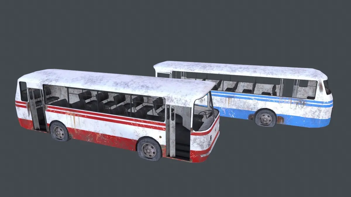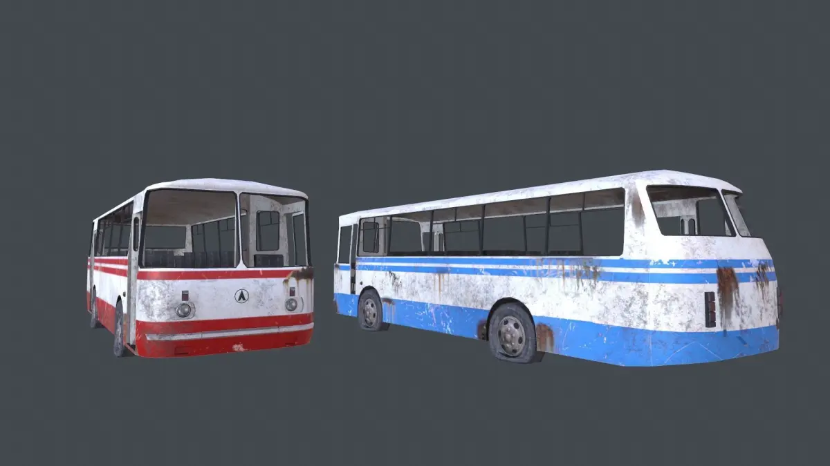 A Low-poly 3D model of old rusty soviet bus LAZ-695