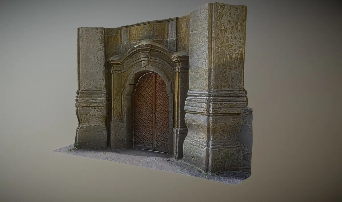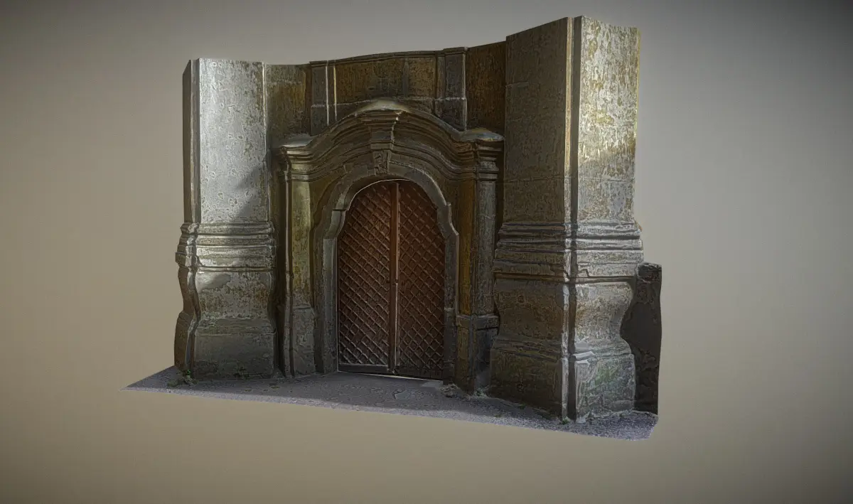 Old entrance gate to an old church. Photo-realistic 3D scanned model comes with 4k PBR textures and 3 LOD versions.Slow and a very fast door opening is animated in 3d max scene as well as in .fbx format. Door opens inwards much better. Other direction causes some intersections with a wall. Gate is decorated with symmetrical pattern made of wooden planks.Pictures of a gate where taken in a sunny day so light direction is baked in color map, but Photoshop was used to mitigate light directionality. Parts of gate that where barely seen from ground has less accurate textures. Manual retopology was performed on LOD 0, and automatic decimation was used for LOD 1 and 2.Level of detail as indicated by 3d s Max: lod 0 - 1939 polys, 3419 tris, 1812 verts.lod 1 - 1175p,t., 649v.lod 2 - 329p,t., 191v.The church was build in 1746–1768 in late baroque style.It was build as a Catholic church but in 1859 converted to Orthodox worship place then converted back to Catholic one. After second world war the church converted to a vegetable warehouse and two Concrete ceilings where constructed inside a Church. Now it is used for exhibitions and for Catholic ceremonies as well. Note that this is one sided thinn (no thickness) geometry. so if you plan for a camera to go in you will need to model the interior, and some thickness for door / gate.