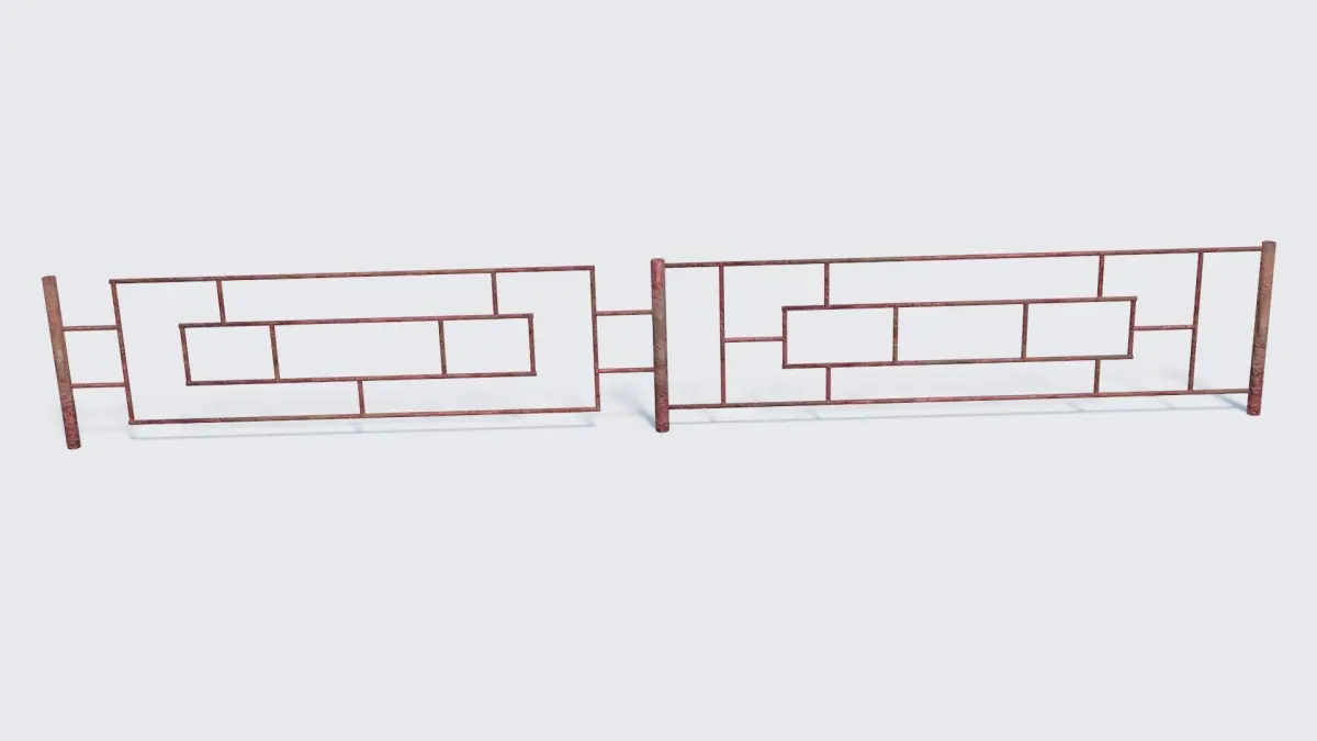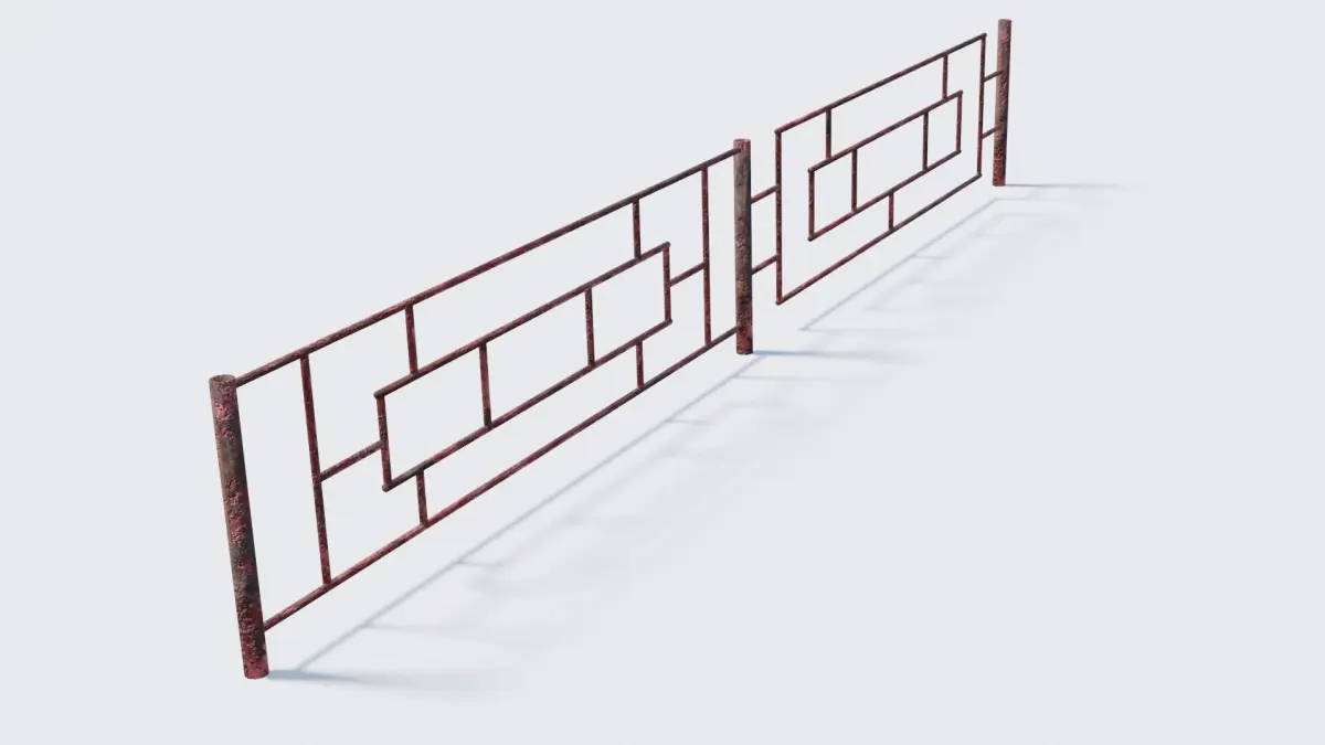 Old rusty fence, Game-ready PBR-Model.Post-apocalyptic exterior model.Texture maps 2048 x 2048:-baseColor,-metal,-normal,-occlusion,