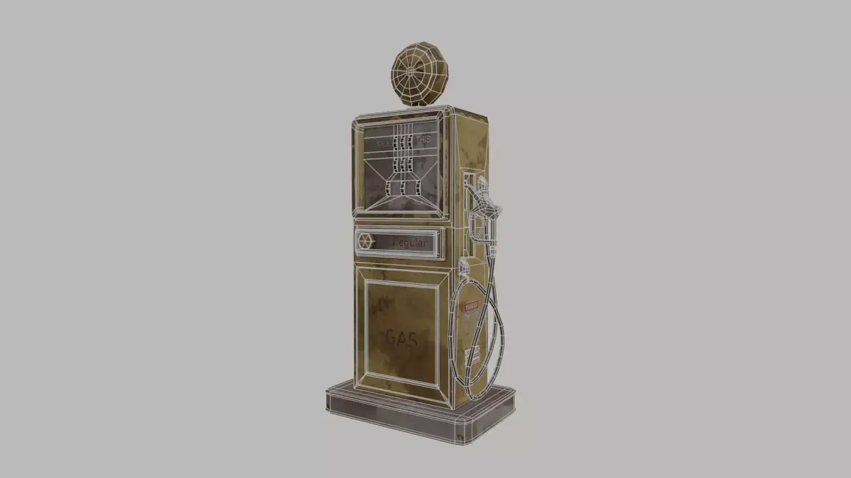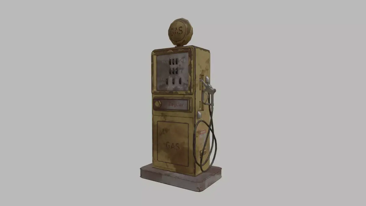 This is a high-quality, game-ready 3D model of a vintage, weathered gas station pump. Designed with a focus on environmental storytelling, this asset features realistic rust, dirt, and wear, making it ideal for post-apocalyptic, rural, or historical game environments.