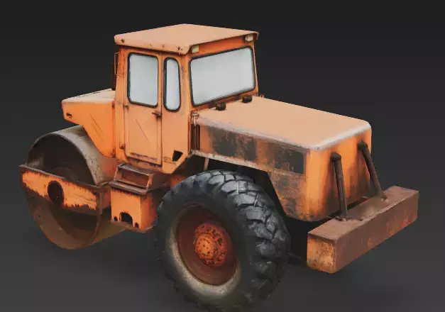 The Overall Concept This asset is a heavy-duty road roller, a construction vehicle used to flatten asphalt or dirt. It is depicted as a vintage model that has been heavily used or abandoned, making it perfect for industrial scenes or scrapyards.