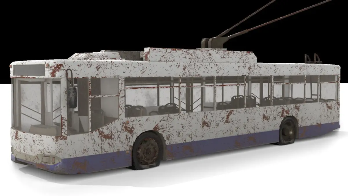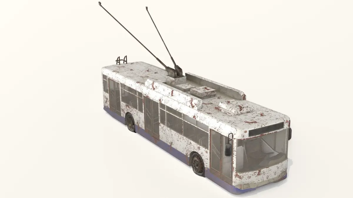 Old Rusty Trolleybus, Game-ready PBR-Model.Post-apocalyptic exterior model.Texture maps 2048 x 2048:-baseColor,-height,-metallic,-normal,-occlusion,