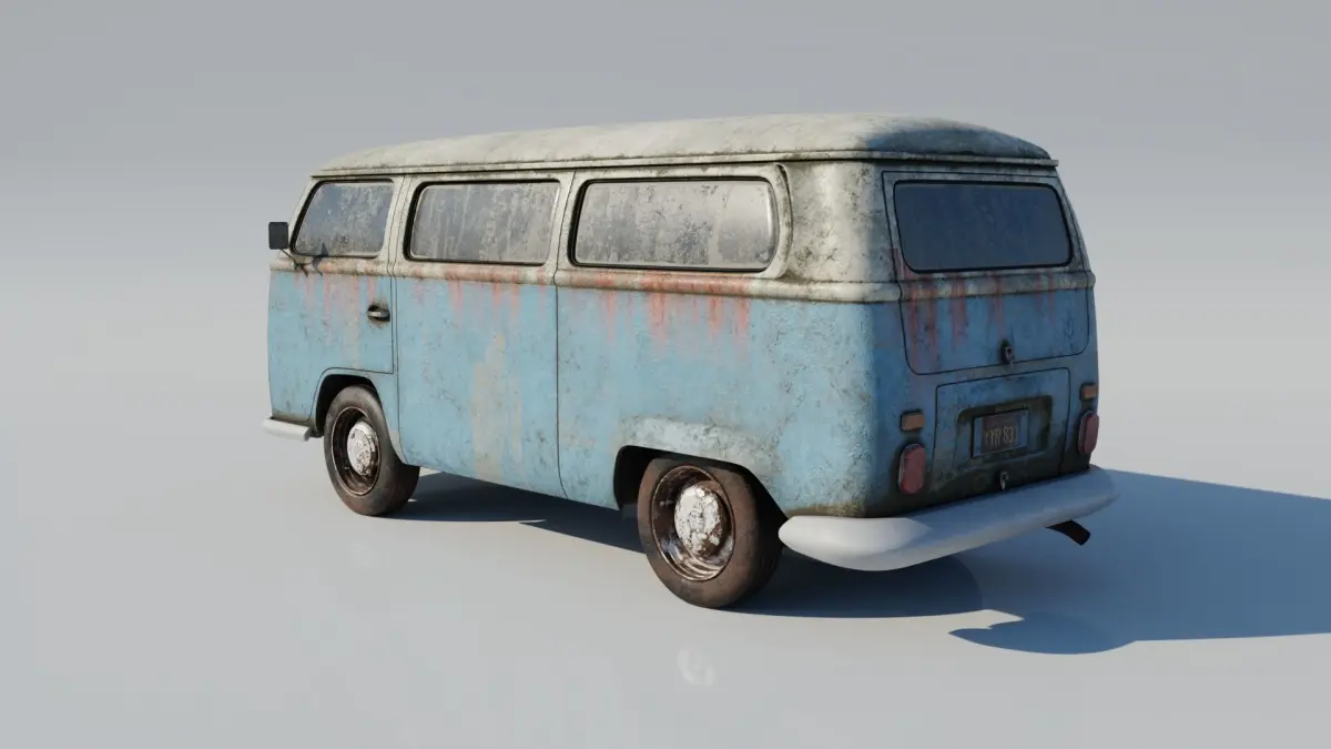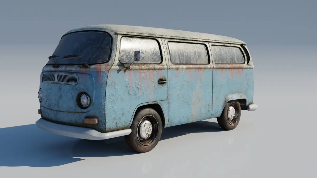 Old rusty highly detailed 3D model VOLKSWAGEN T2 from 1978